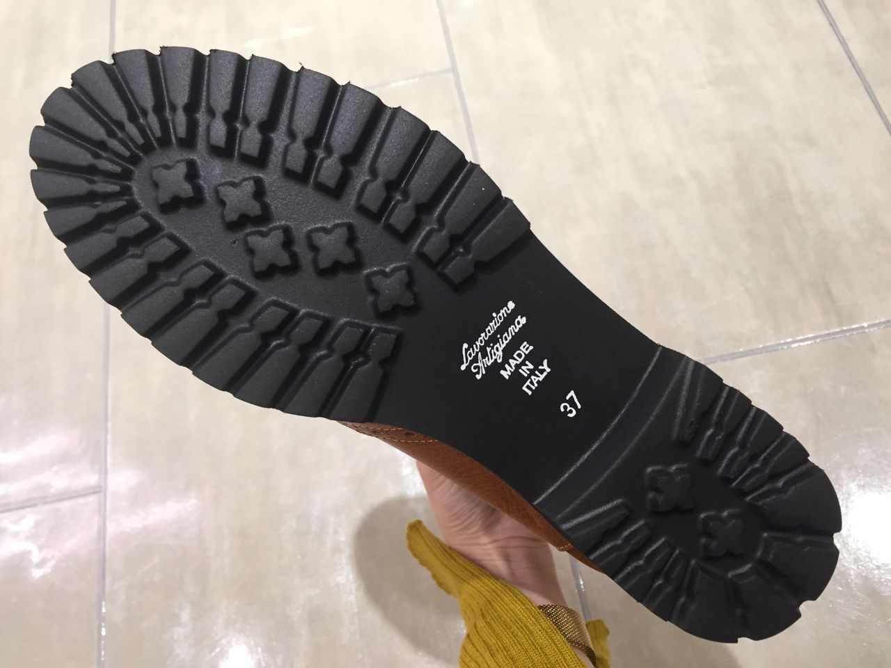 アウトソールは約1cmの厚みがあり、ヒールは約2cmです。