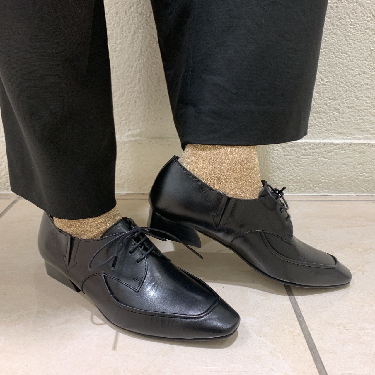 マニッシュな足元ながらスタイルアップも叶えてくれます◎