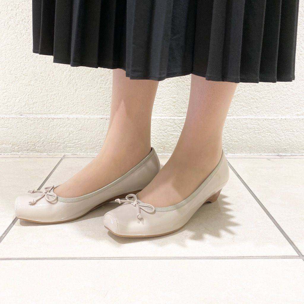 ころんとした印象のスクエアトゥと、ワンポイントになるリボンが可愛いパンプスが入荷致しました!