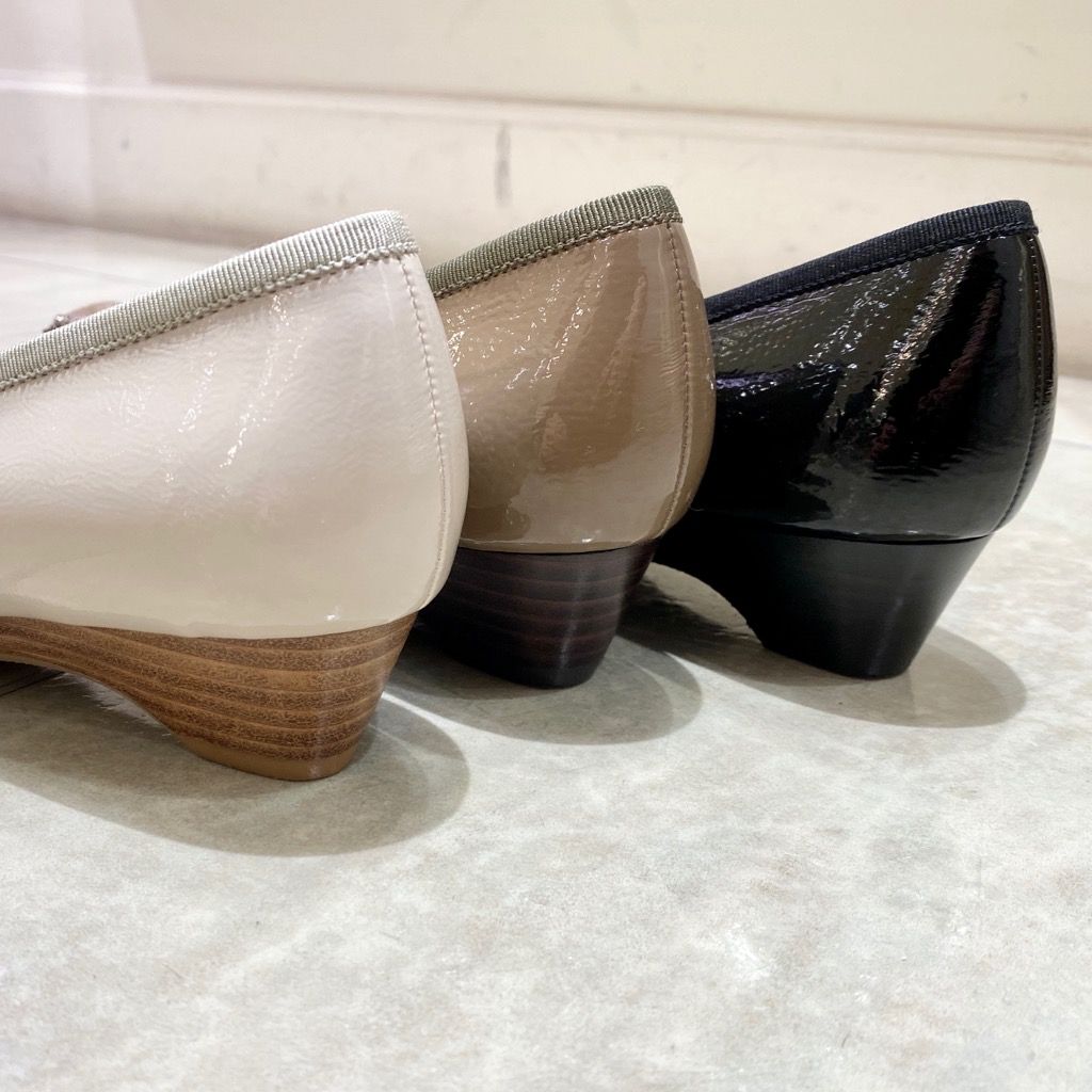 エナメルの素材が上品さを引き立てて、オフィススタイルでも活躍しそうですね!☆