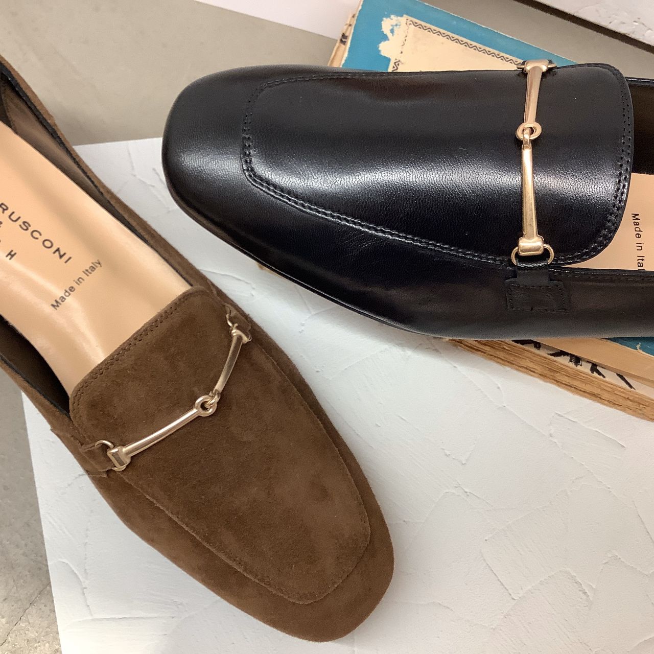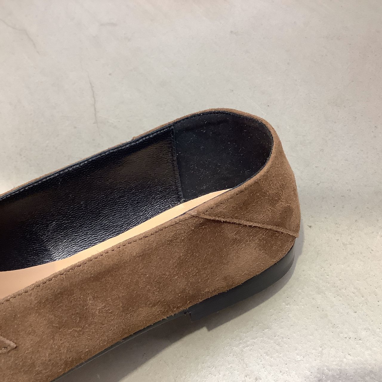 全体的にすっきりとした印象のローファーでスタイリングの幅も広がります。
