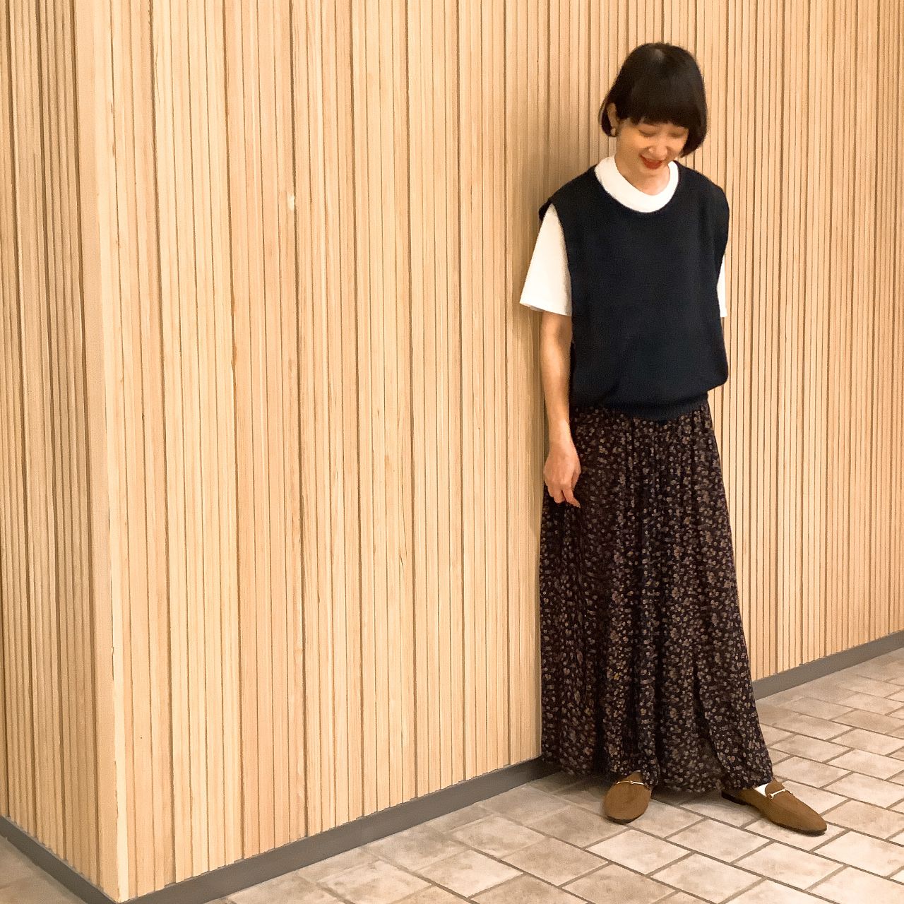 ベスト×ロングスカートのトラッドスクールスタイル風に。