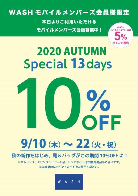 WASH二子玉川ライズ店では9月10日~9月22日まで「Special 13days」を開催します!