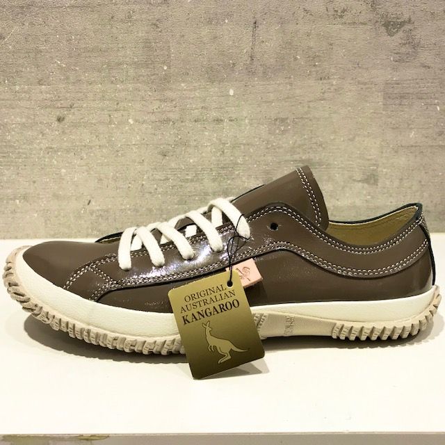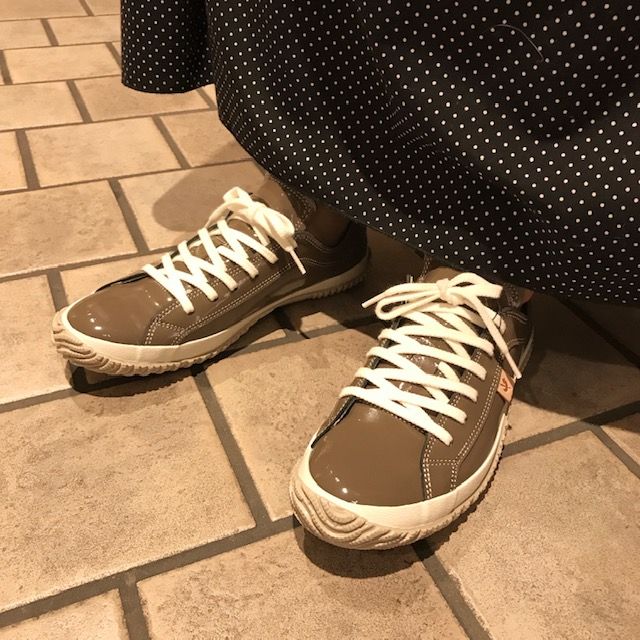 WASH別注カラーはカンガルーレザーにエナメル加工を施したローカットスニーカー。