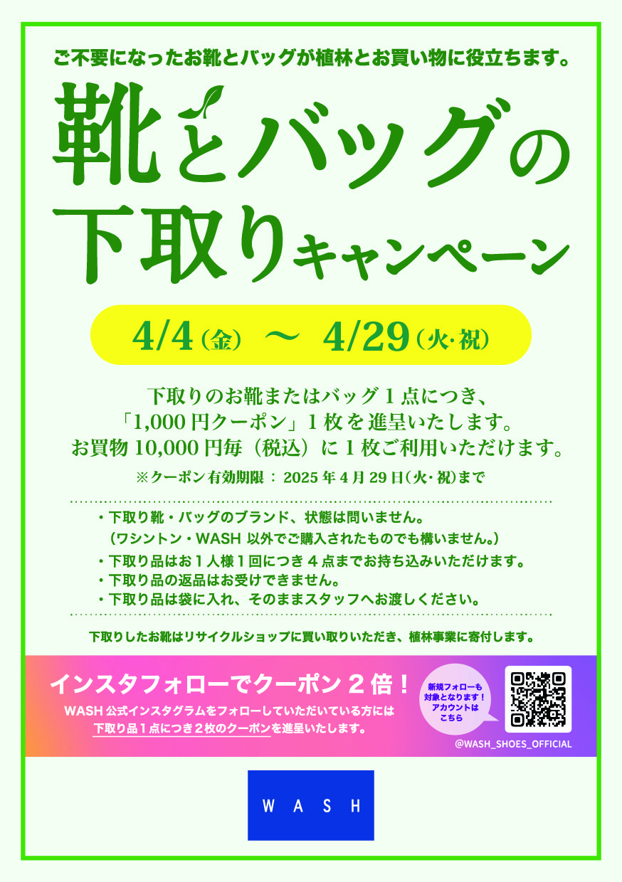 また、WASHの公式Instagramをフォローしていただいている方には下取りクーポンを2倍お渡しいたします!