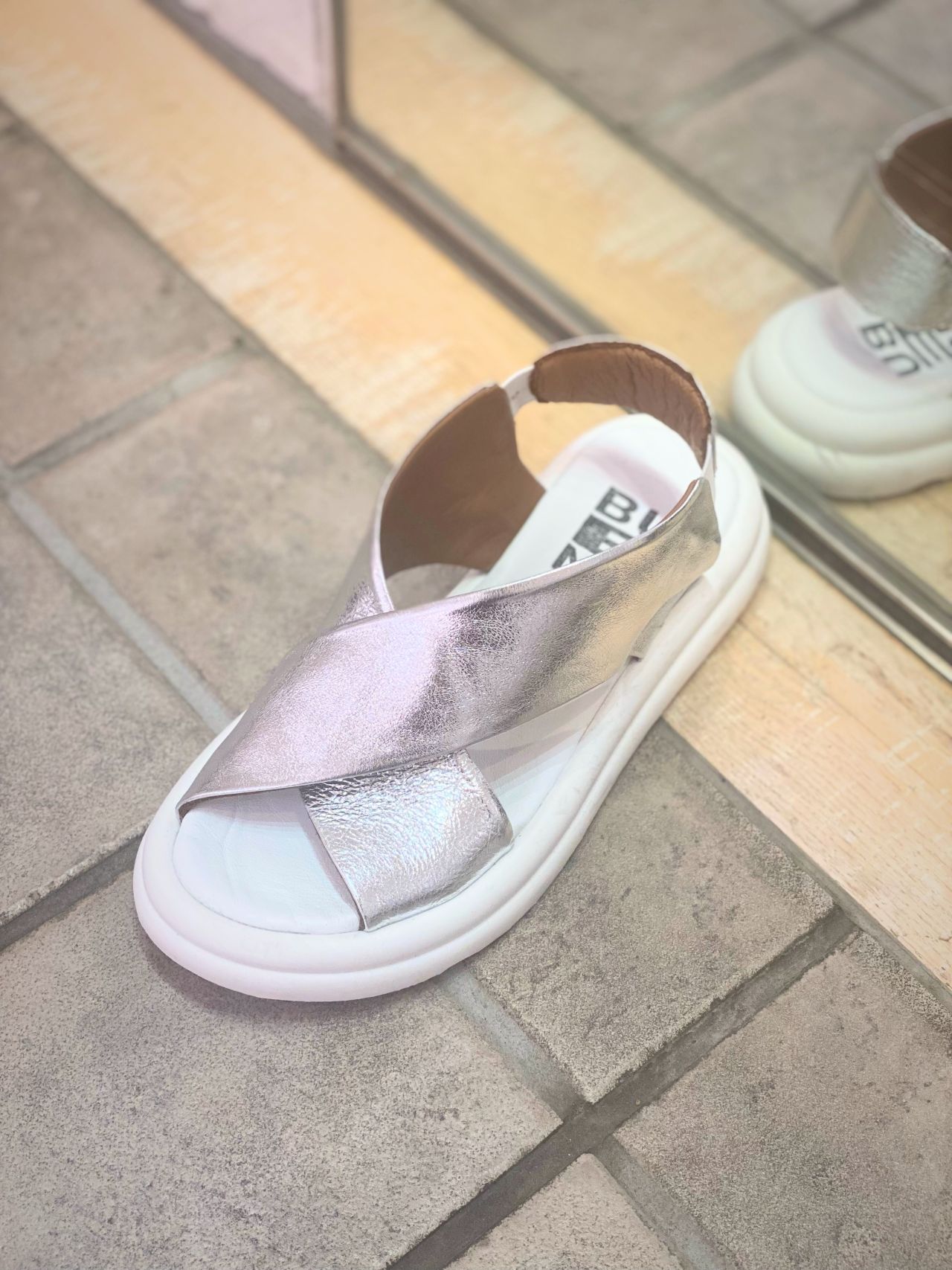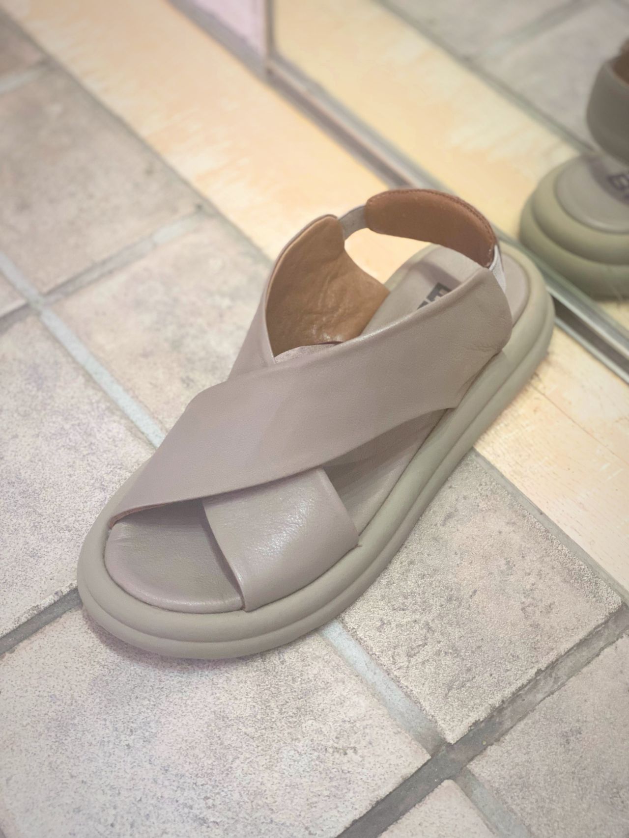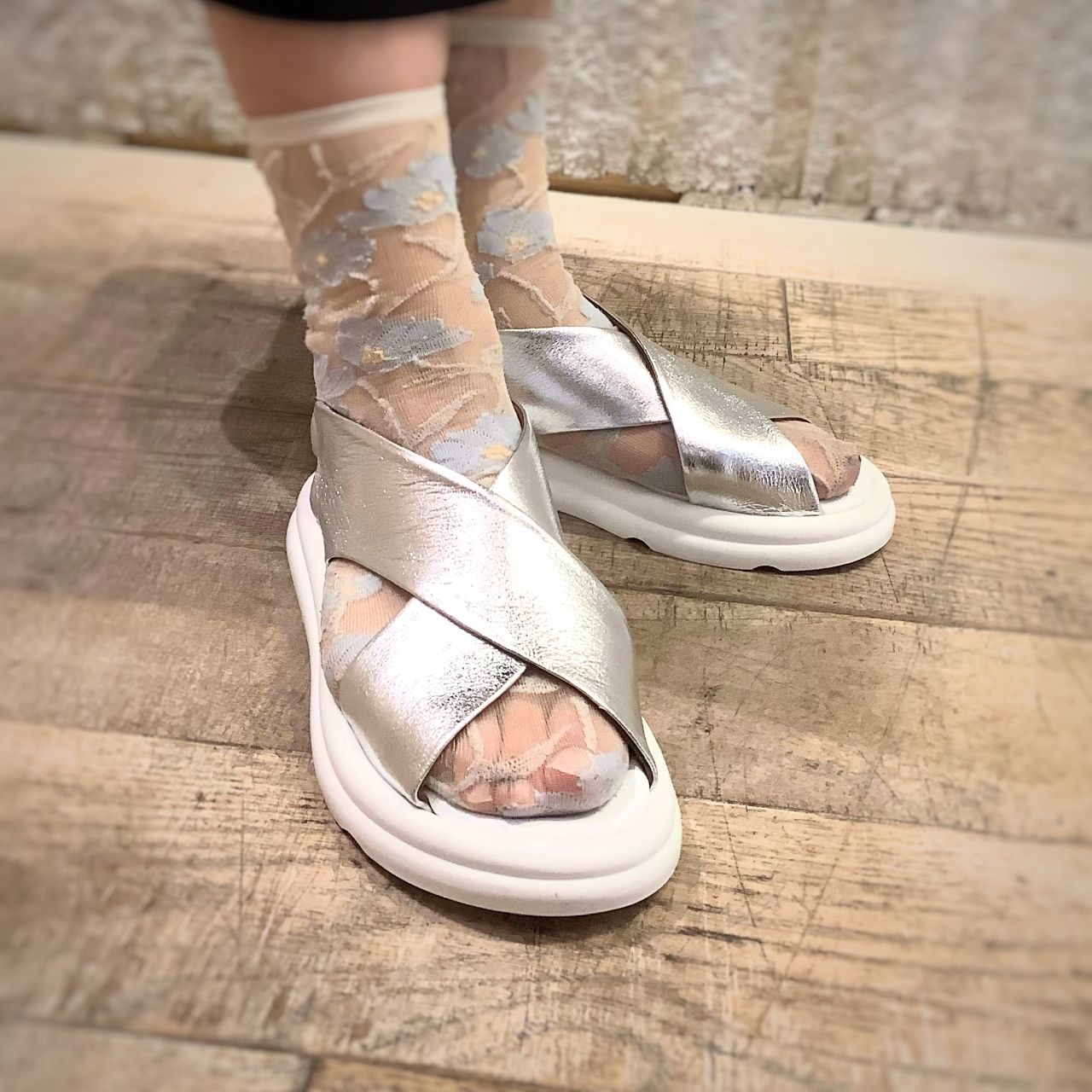 アッパーのクロスベルトでしっかり甲を支えてくれるので、安定して歩けます。