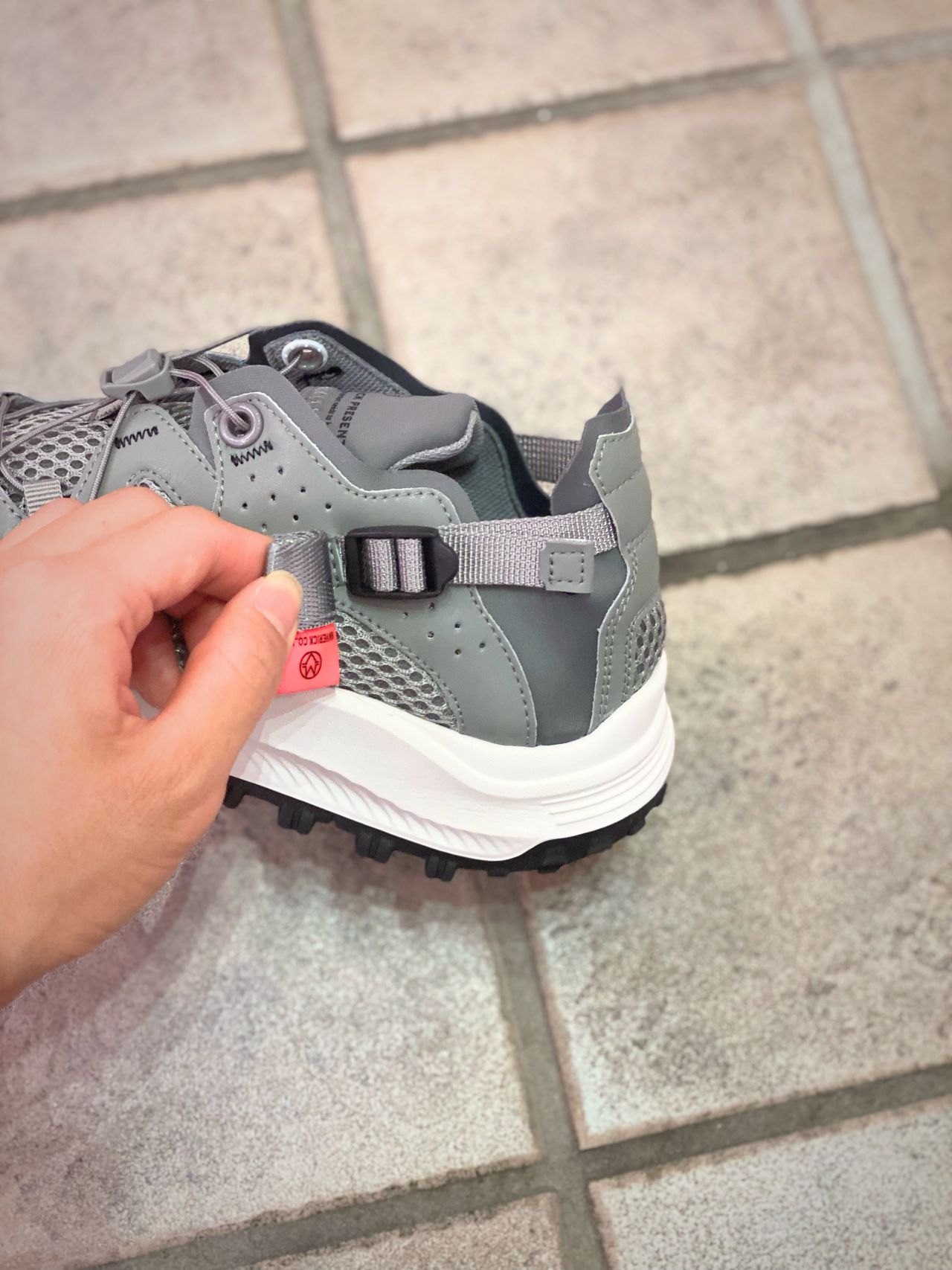 フロント部分はヒモにストッパーが付いていて、ワンタッチで調節が出来ます。