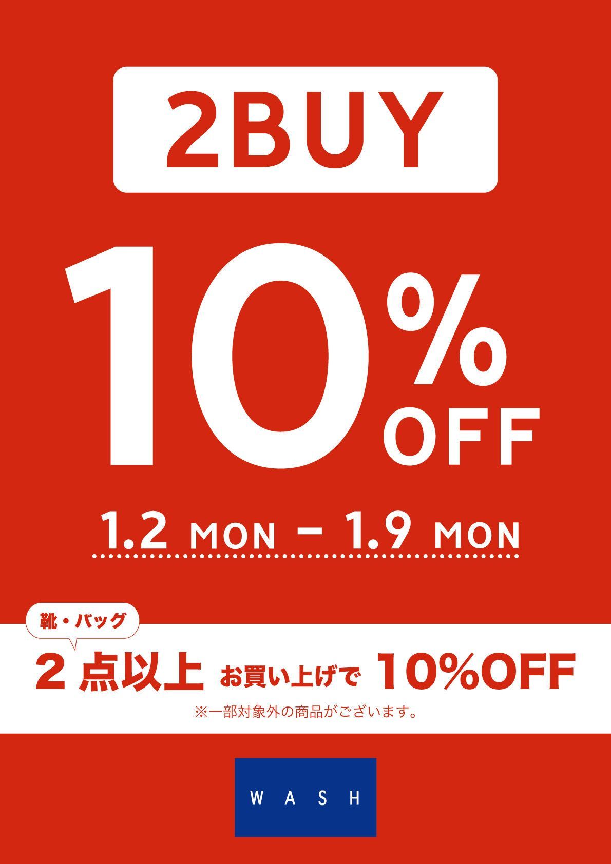 靴・バッグ2点以上お買い上げでレジにてさらに10% OFF!!