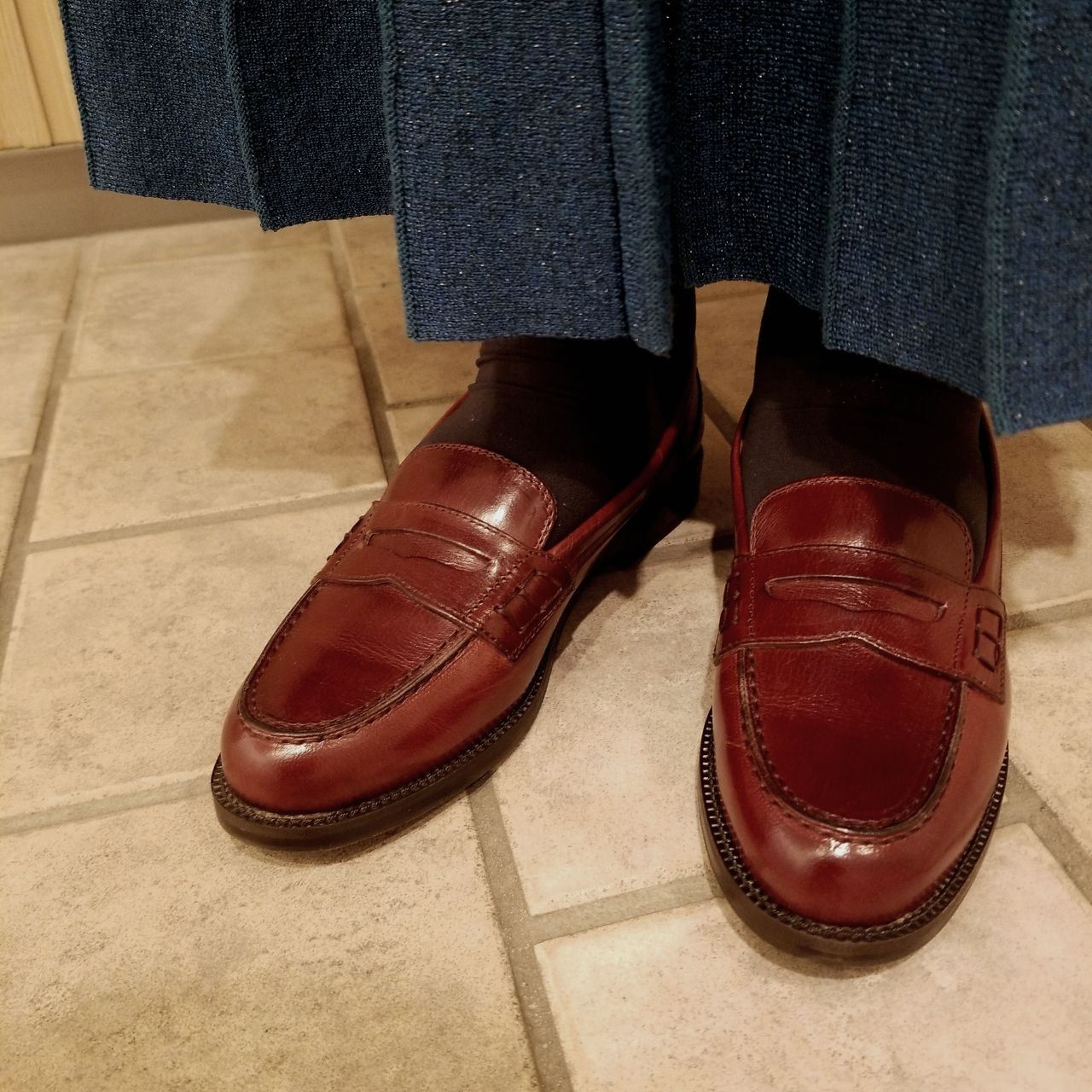 安定感のあるローヒールなので歩きやすく、どんなスタイルもカッチリ決まるローファーですよ。