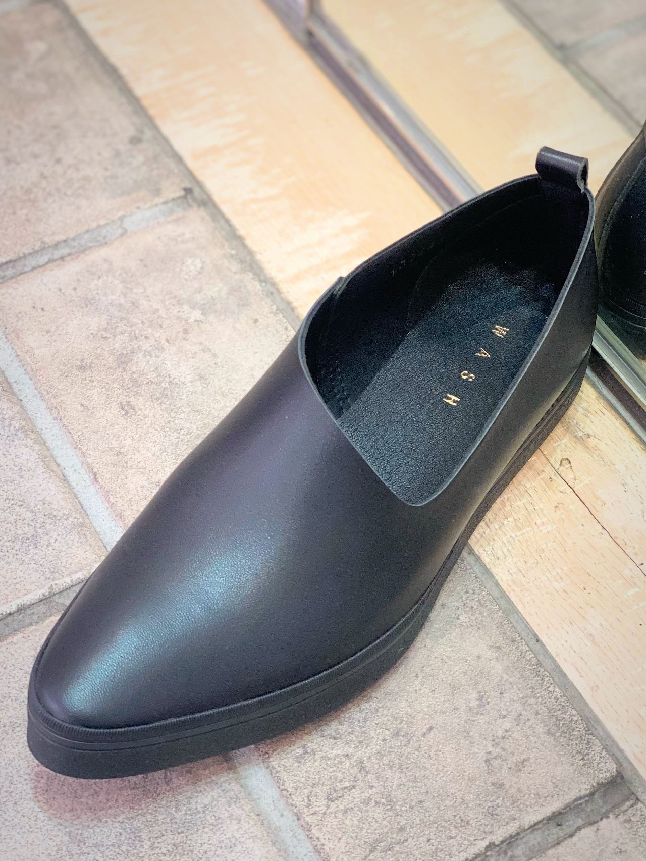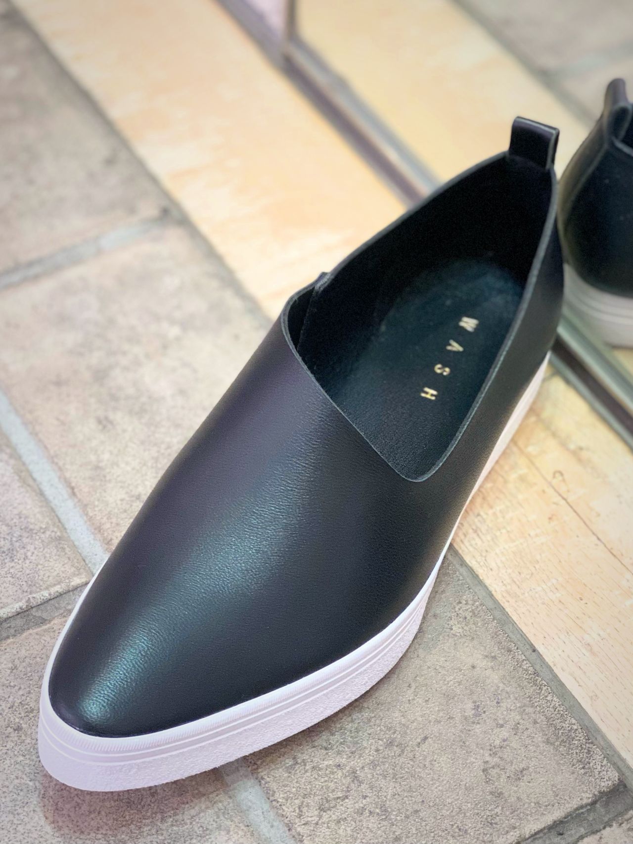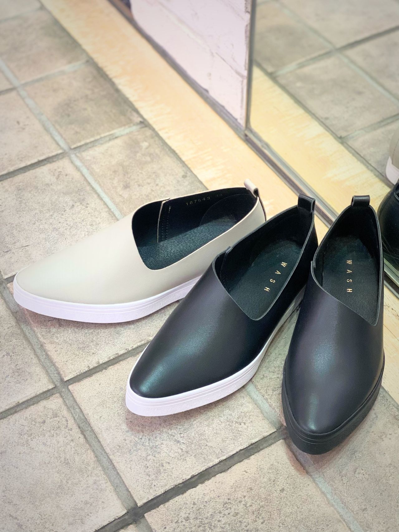 WASH アシンメトリーカットスリッポン