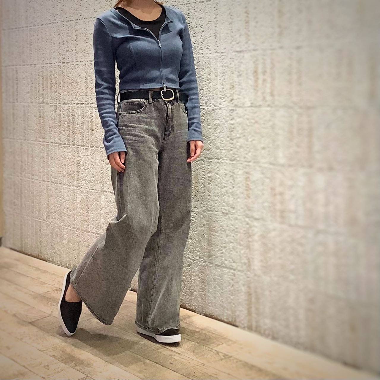 ワイドパンツの裾からつま先を覗かせるのが可愛いです!