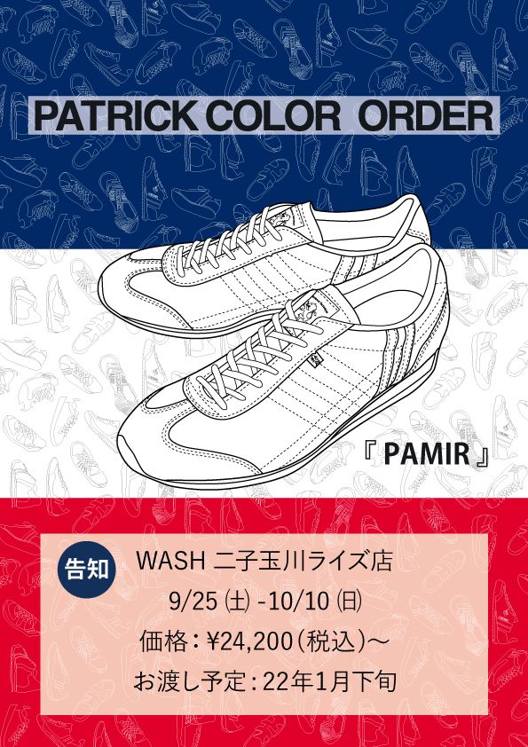 来月パトリックのパミールのカラーオーダー開催します!