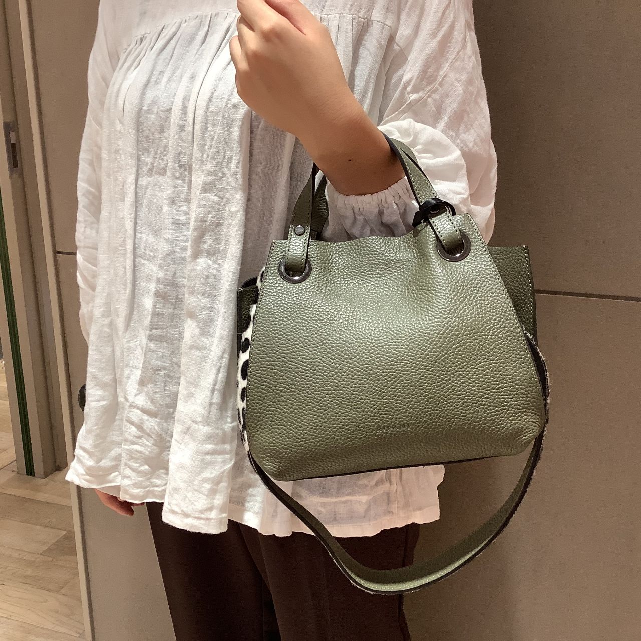 グリーン系カラーはグレーのようにも抹茶のようにも見える