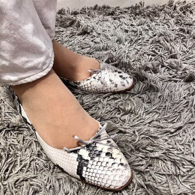 可愛らしいイメージのバレエシューズもこちらのデザインですと大人っぽく取り入れられますよ!