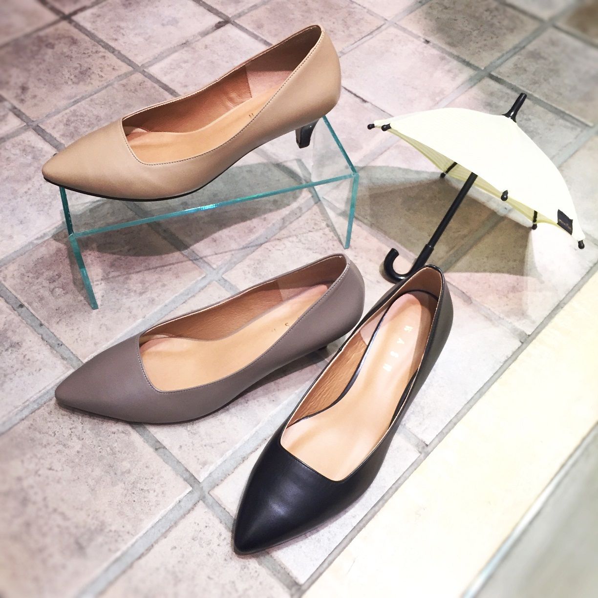 撥水レザーを使用した晴雨兼用のパンプスが登場しました!