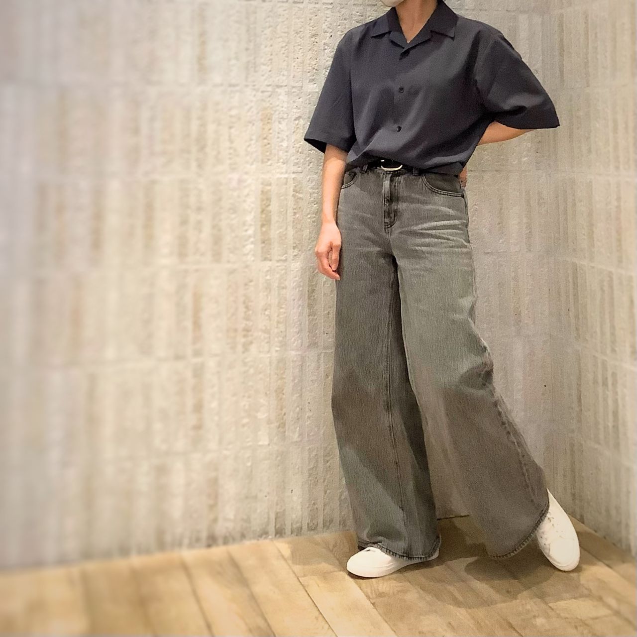 デニムワイドパンツでカジュアルに。