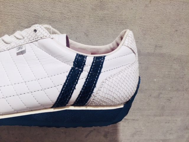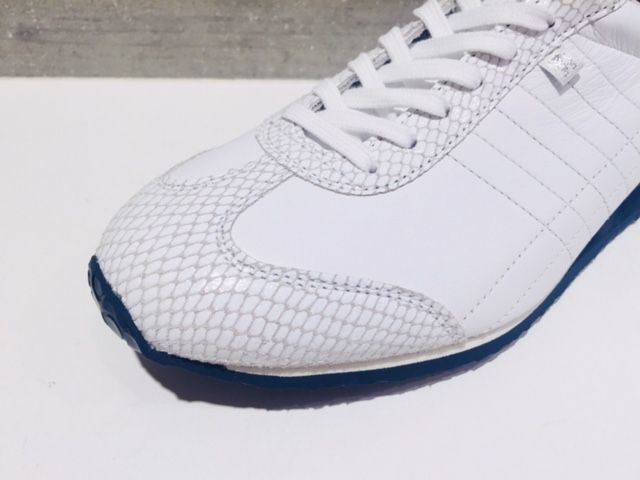 つま先やカカト部分にスネーク柄を施したピッグレザーが使用されています。