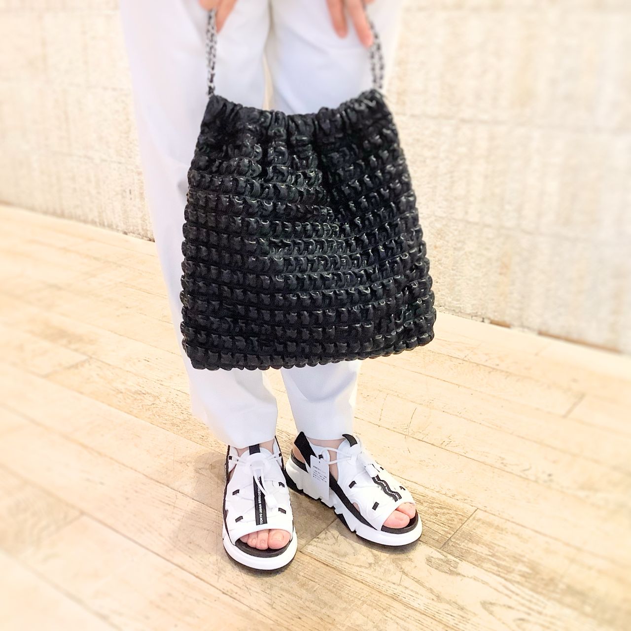 パンツで合わせても、スカートで合わせてもバランスの取りやすいボリューム感のサンダルです!