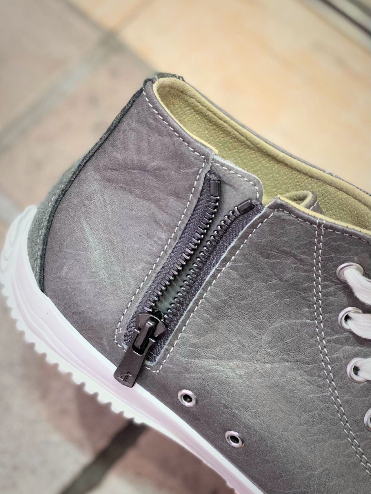 内側にジップがついているので、脱ぎ履きも楽ちん。