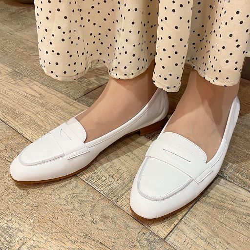 ローファーですが深すぎないのでフェミニンな雰囲気に。