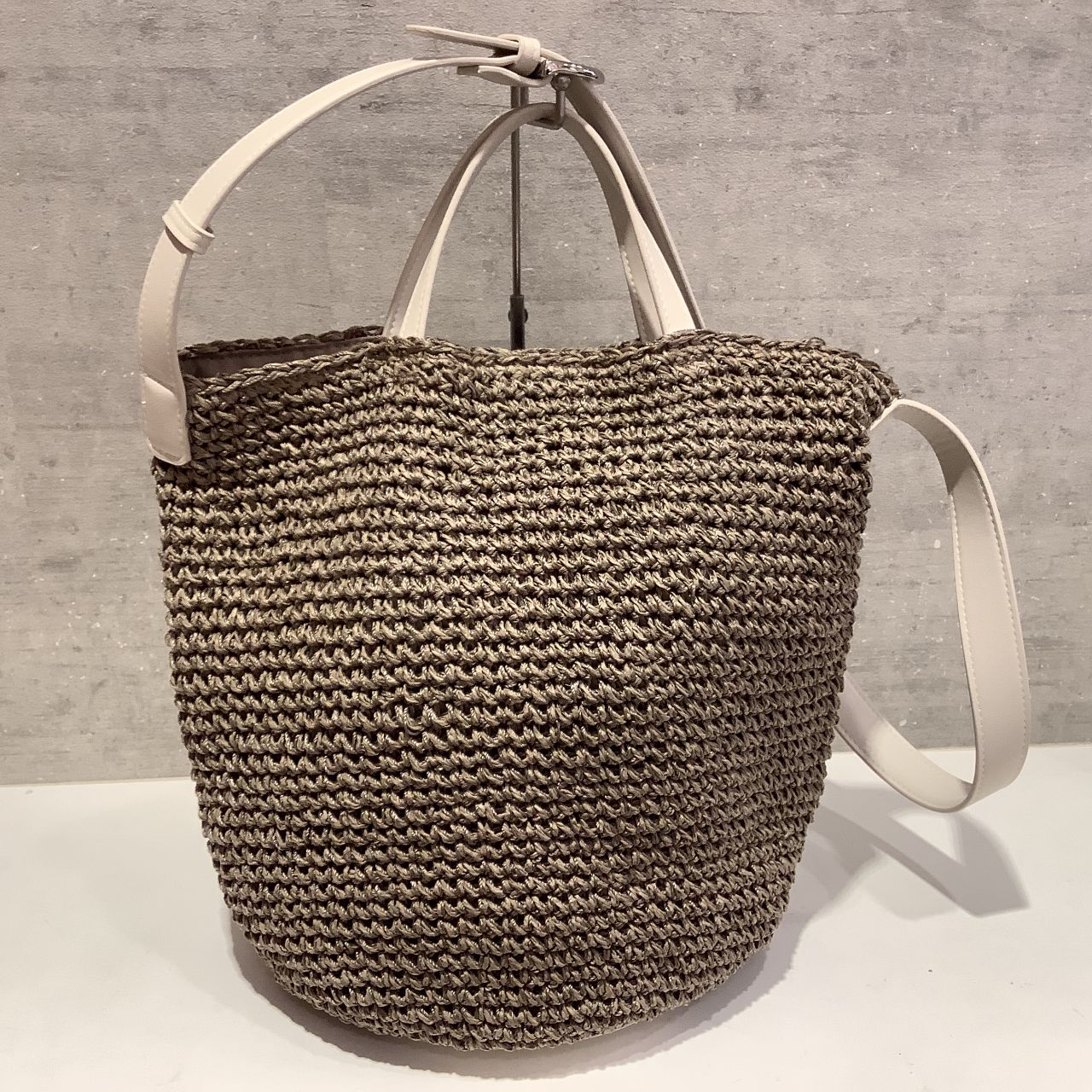 こちらのカゴバッグは、バケツ型でとてもかわいいです。