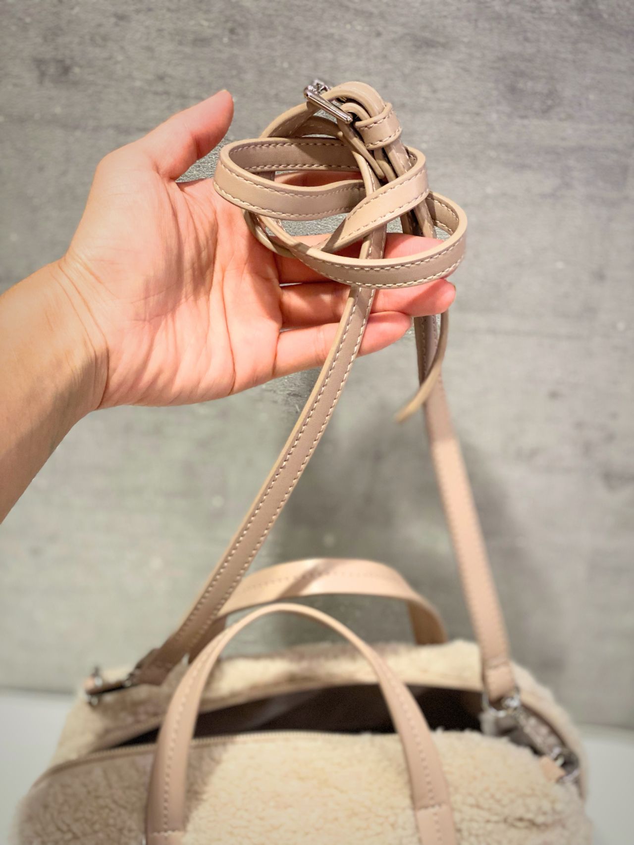 ハンドルを短く持っても、ストラップを使って肩に掛けても可愛いです!