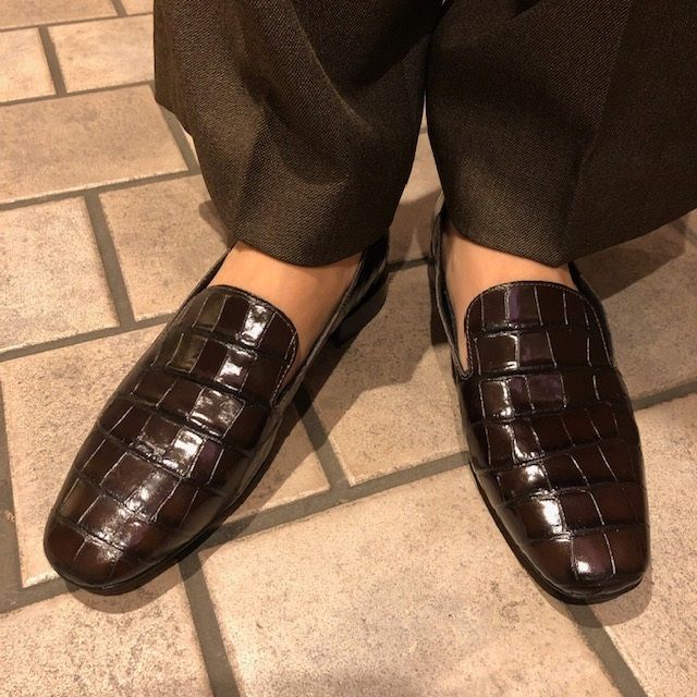 こちらはクロコ型押しデザインがとってもおしゃれな一足です!