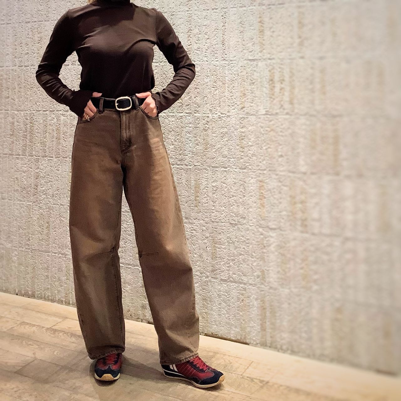 ブラウンコーデだったので挿し色として良い感じです。
