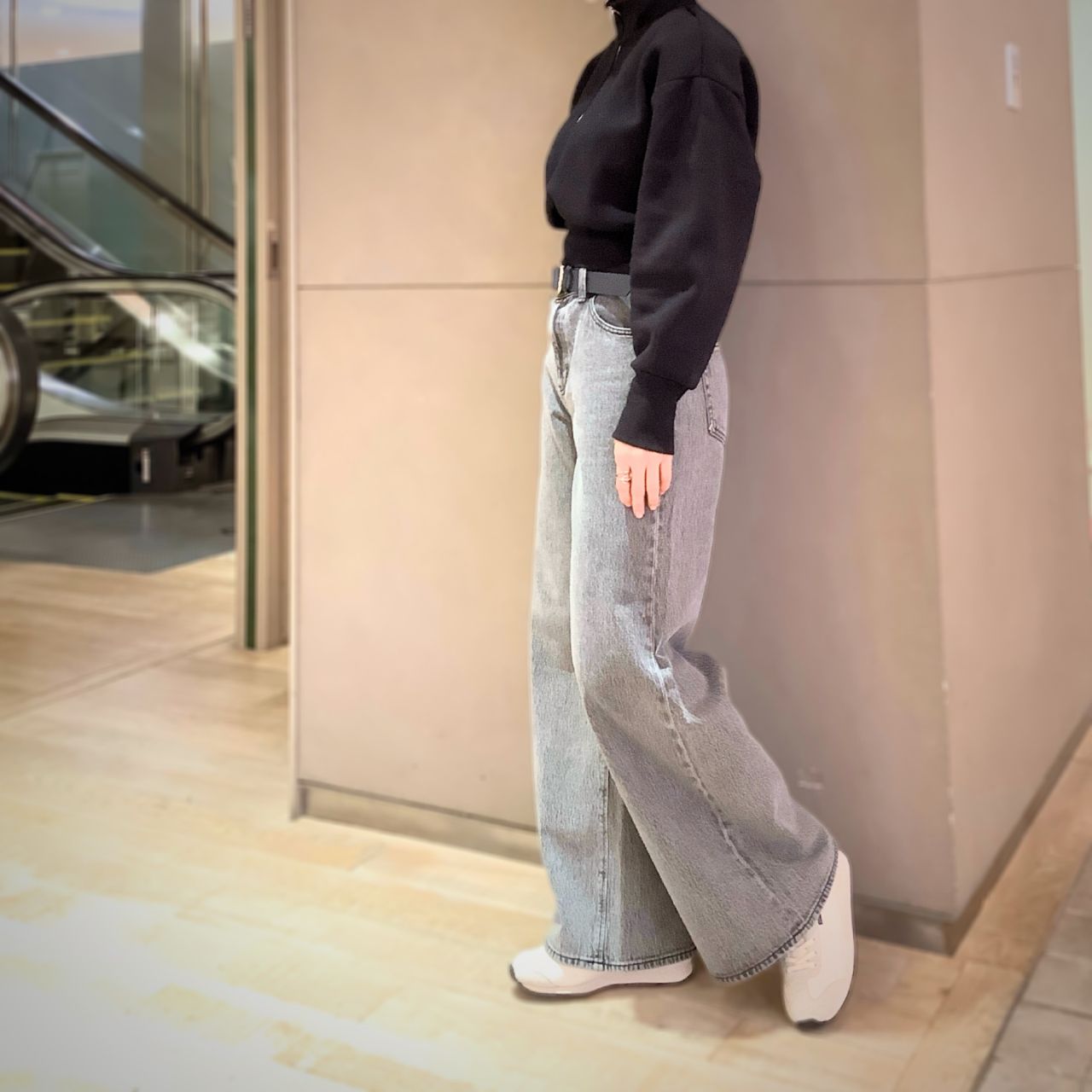 デニムのワイドパンツでカジュアルに。