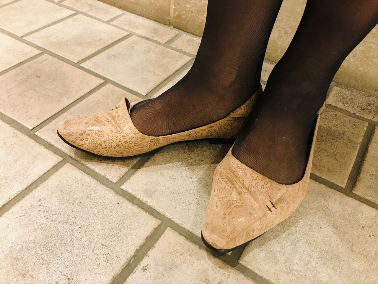 レース調でレディな雰囲気ですが、大柄ではないので、カジュアルコーデに合わせても浮かない落ち着いた1足。