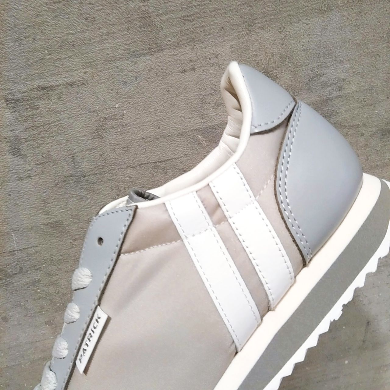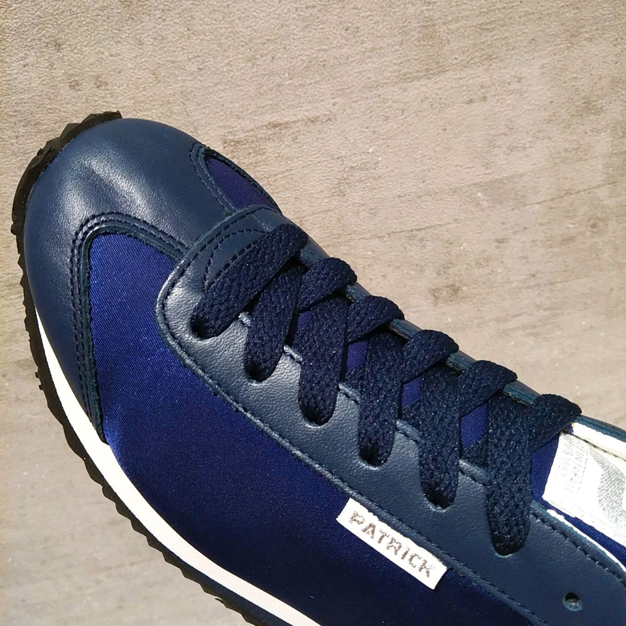 パトリックのアイコン的な2本のラインにはレザーを使い