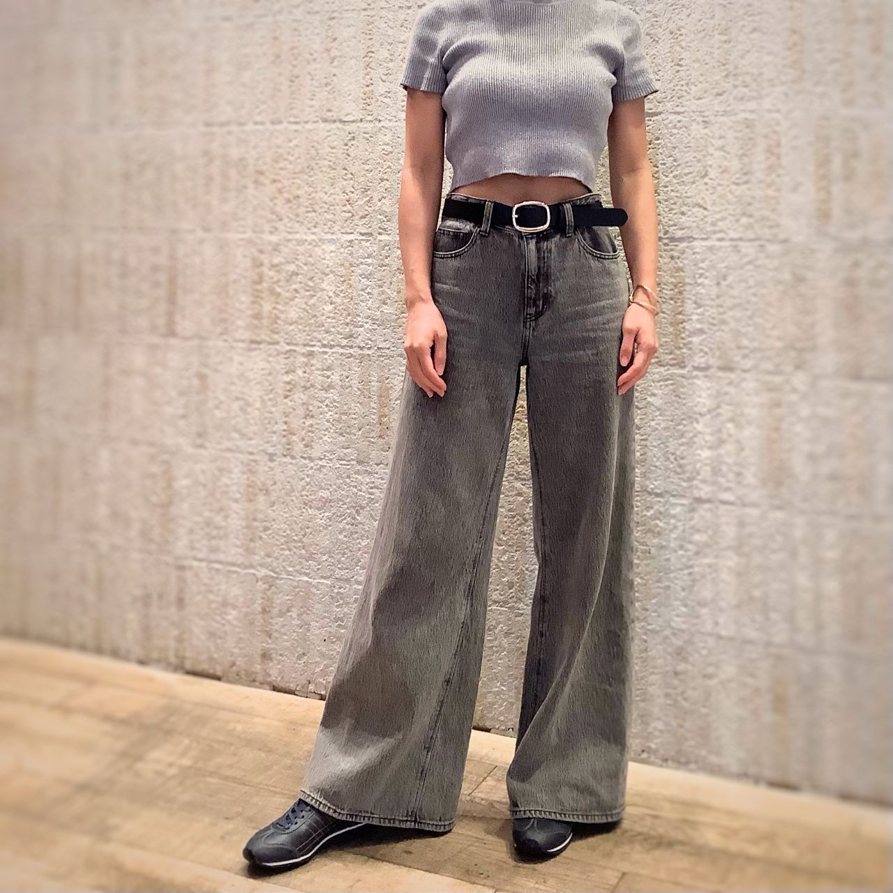 ワイドデニムパンツでシンプルカジュアル。