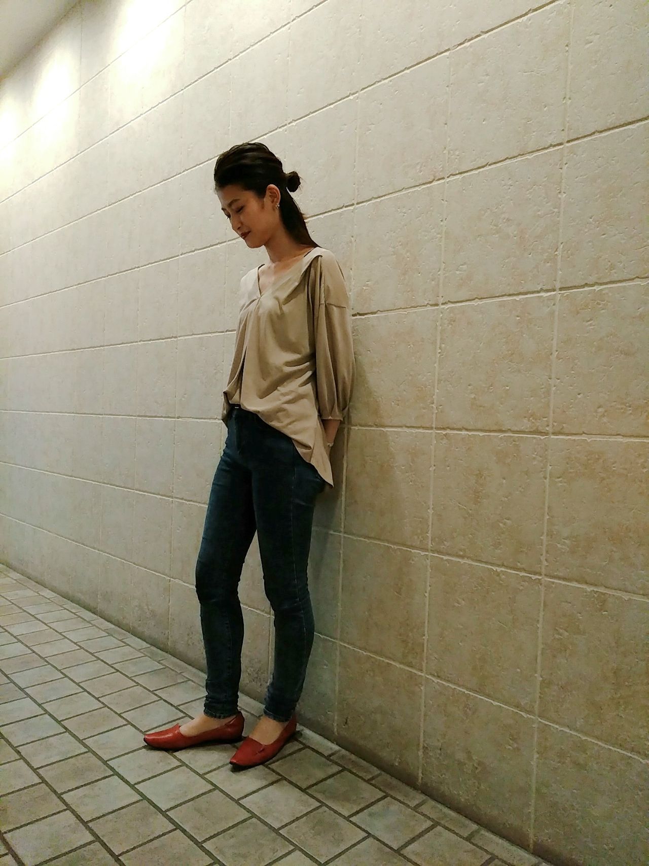 スキニータイプのボトムと合わせると