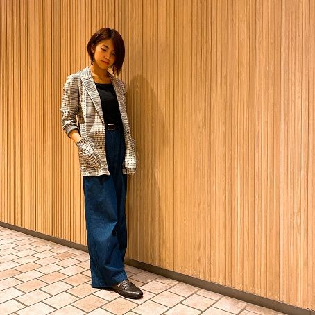つま先が長めなので、ワイドパンツの裾から覗かせて。