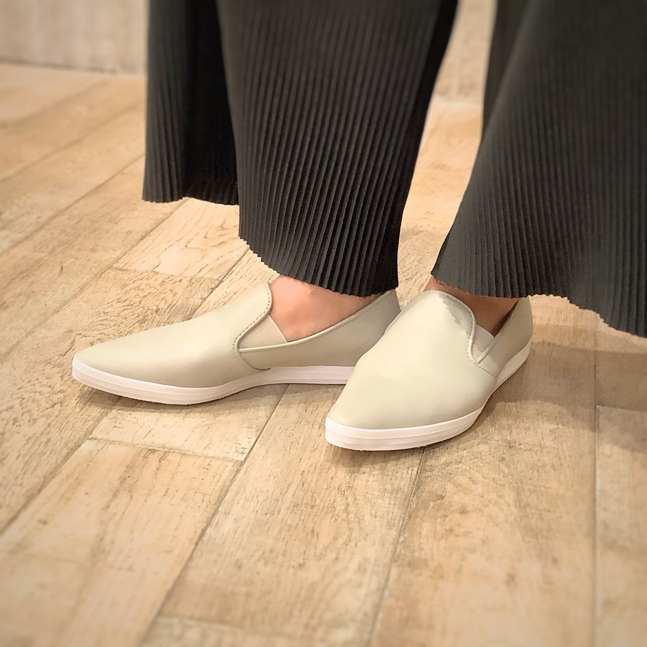 今季の推しカラー、ライトグレーを試着(普段23.5cm/幅広甲高。37サイズがちょうど良いです)