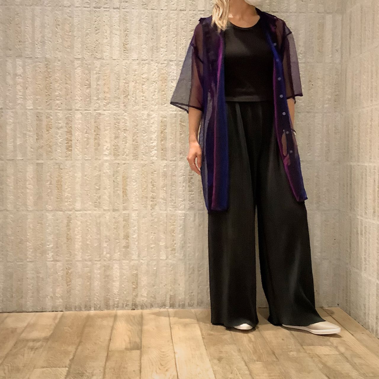 ポインテッドトウをワイドパンツの裾から覗かせるスタイルがカッコいいです♪