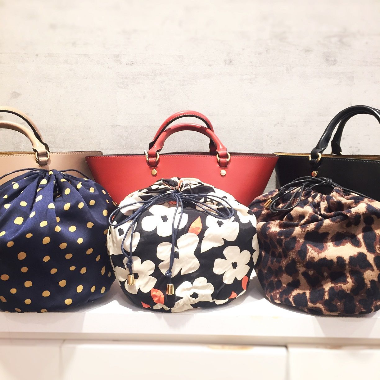 それぞれ柄違いの巾着が付いてます!