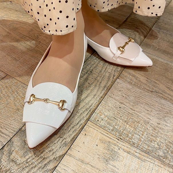ビットつきのシックなフラットシューズです。