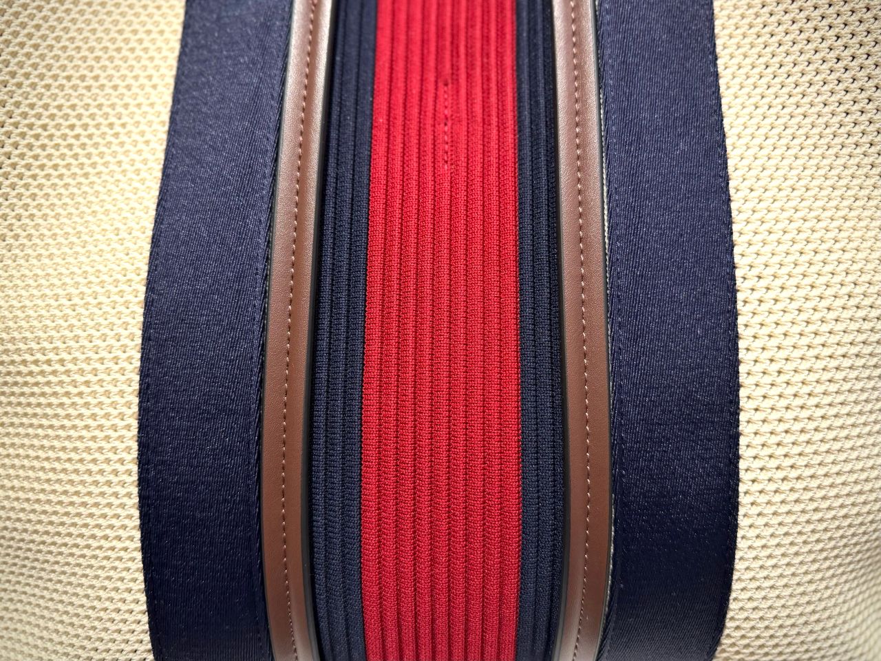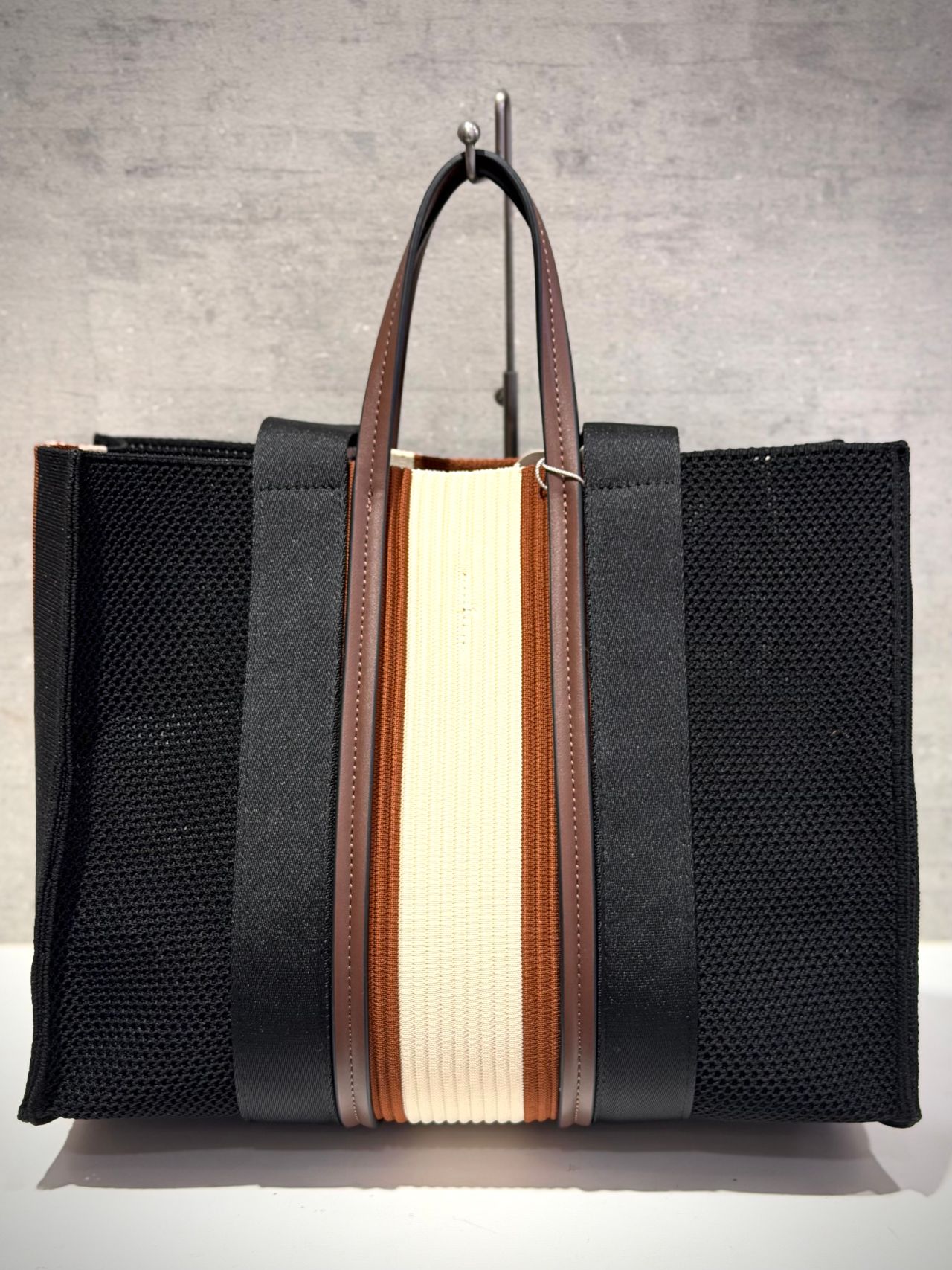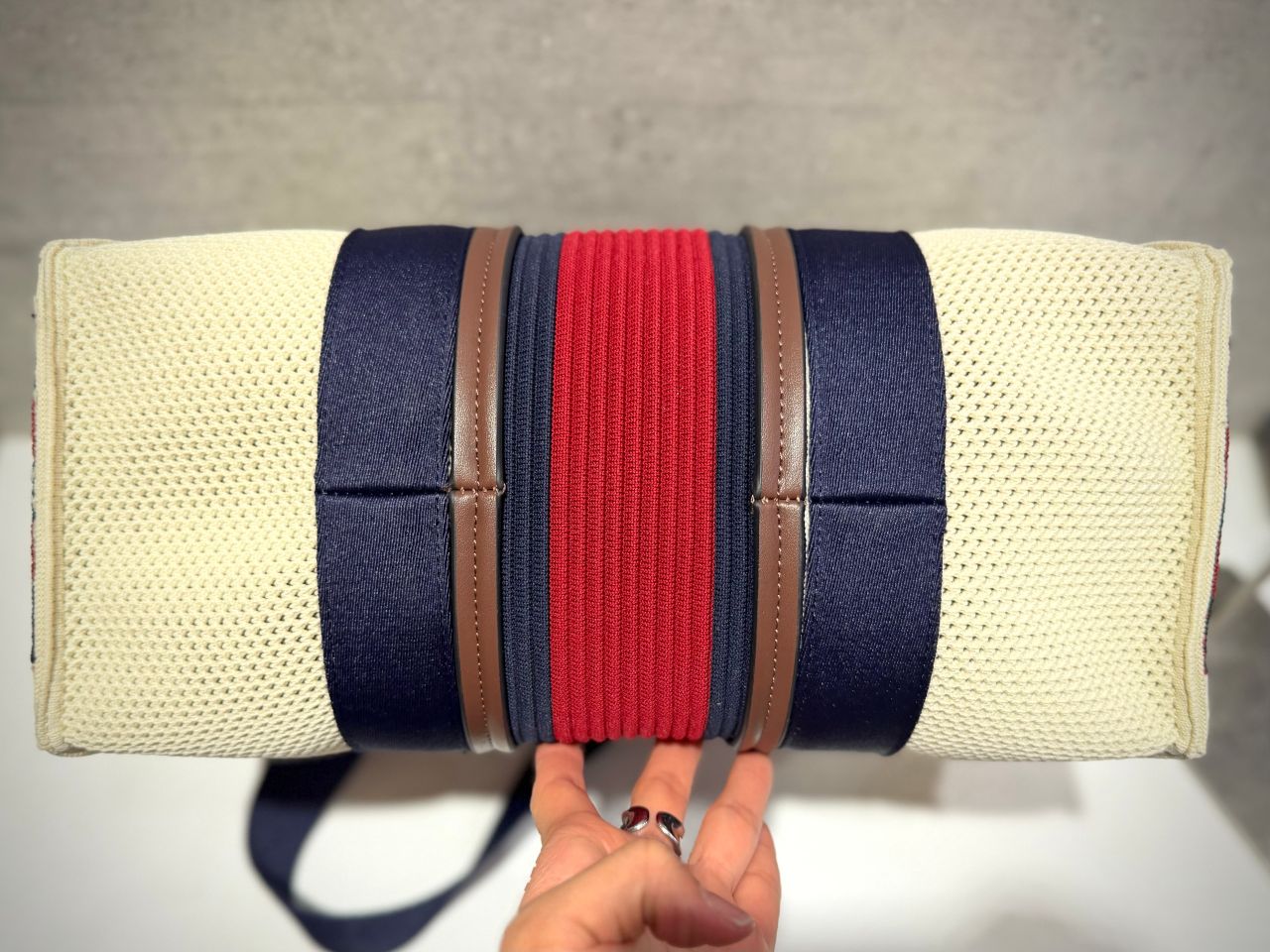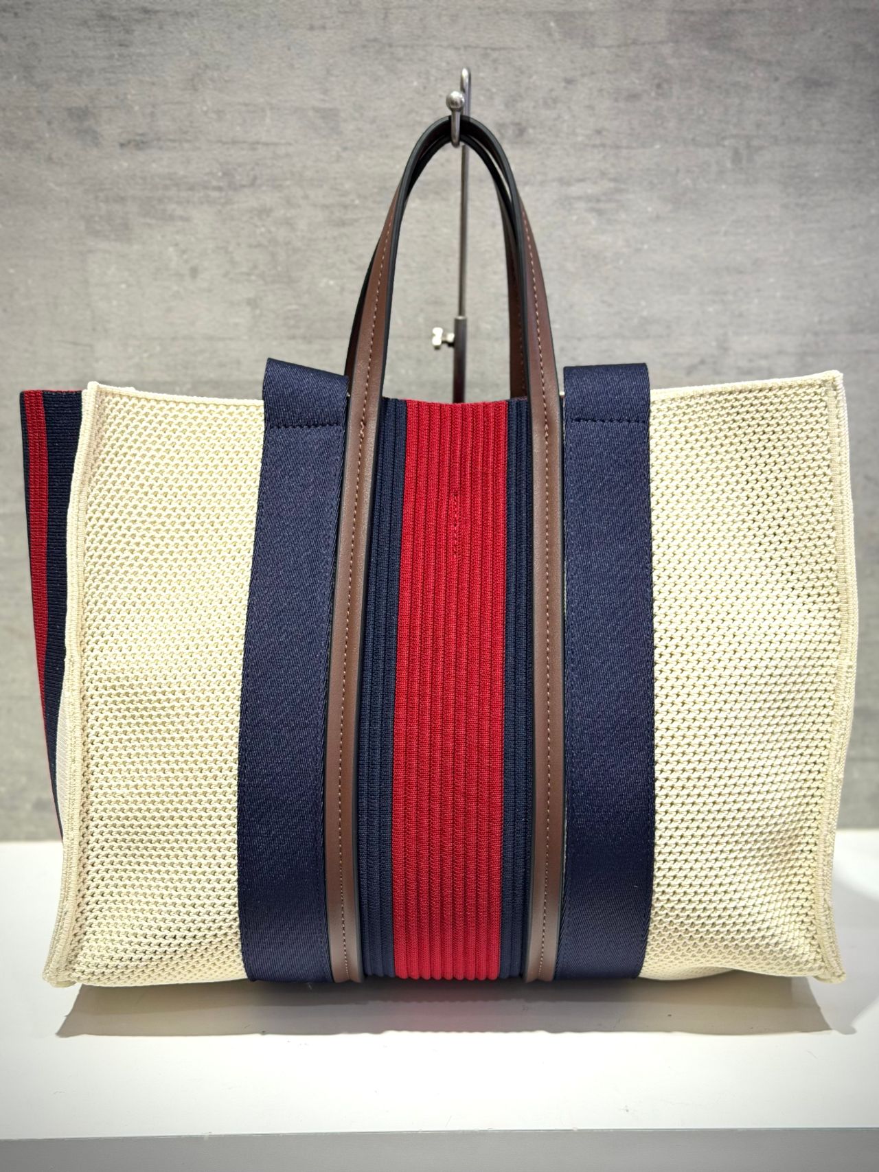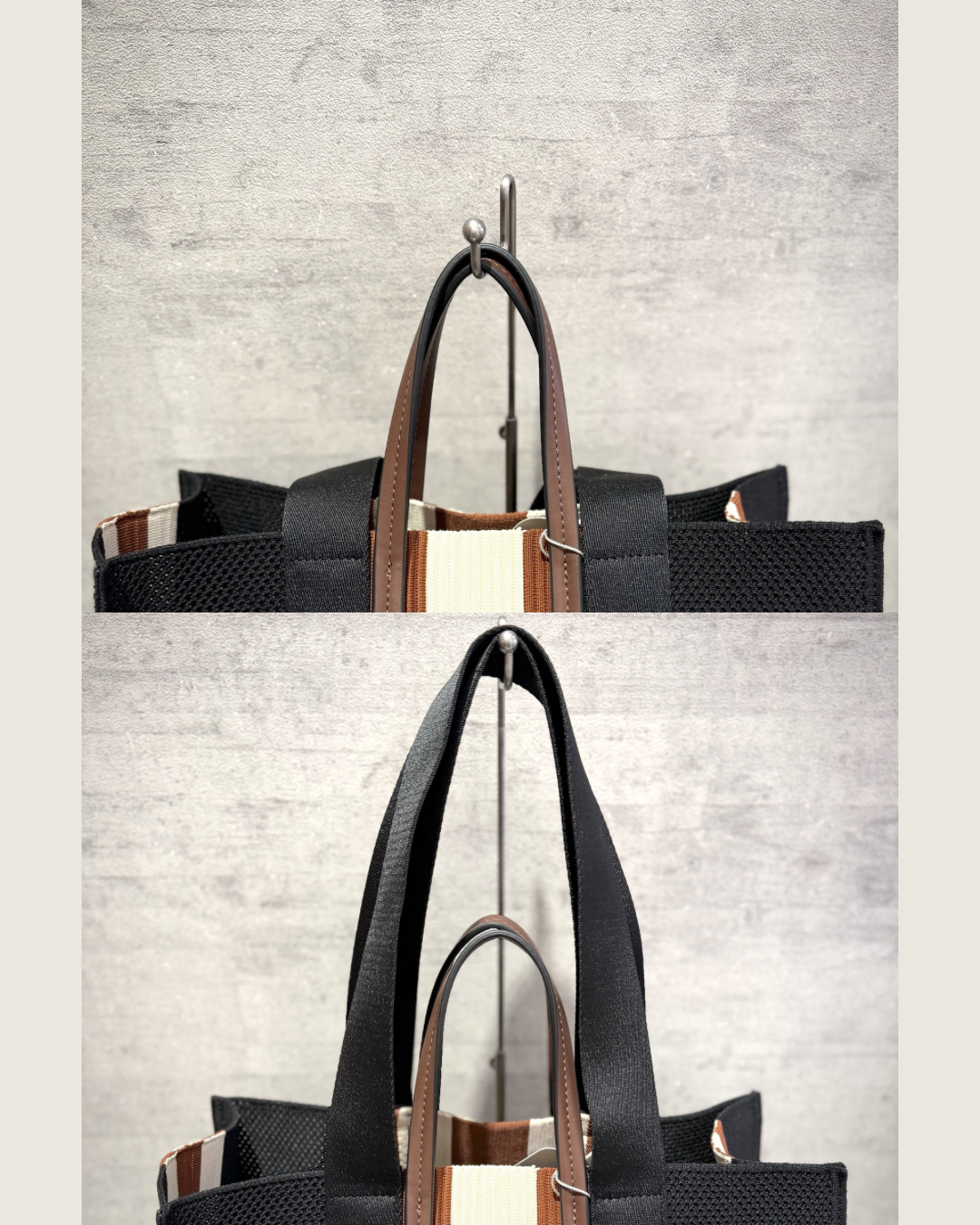 涼しげなメッシュと立体的な表情を持つ縦畝ジャガード生地を大胆に組み合わせた、トレンド感あふれるトートバッグです。