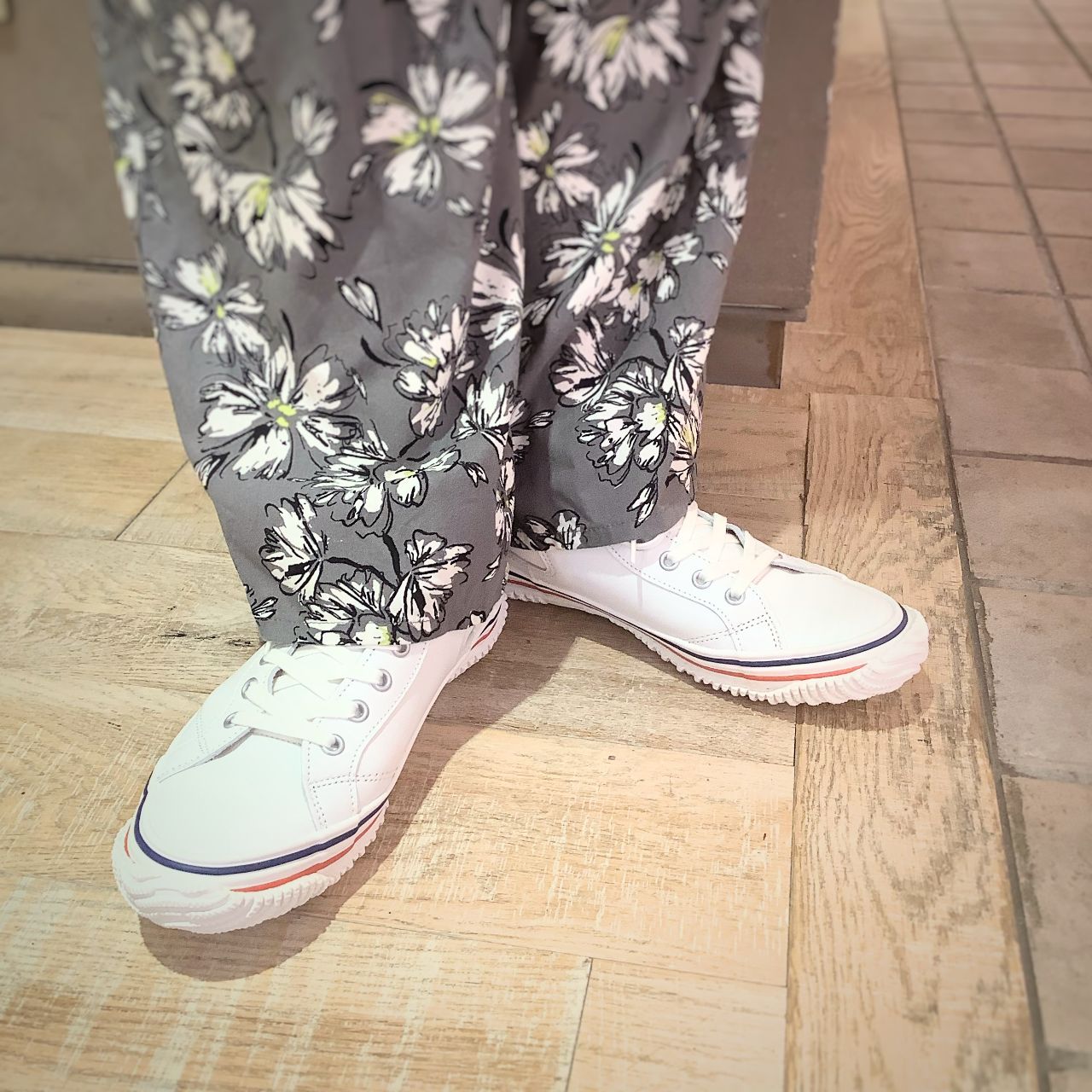 真っ白なアッパーとソール部分に入ったラインが爽やかなこちらを履けば、お出かけもハッピーになること間違いなしです♪
