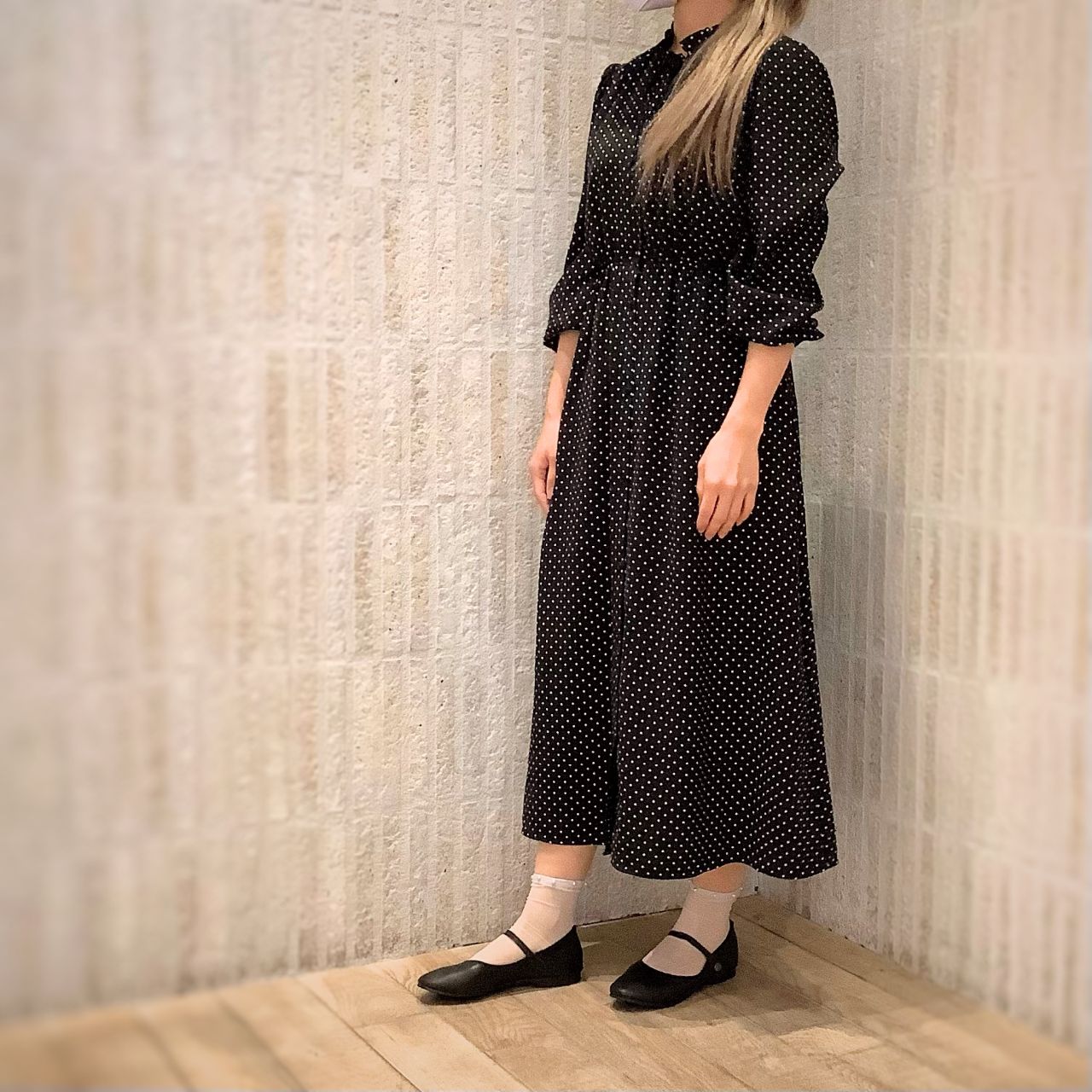 ワンピースで合わせて甘めに。
