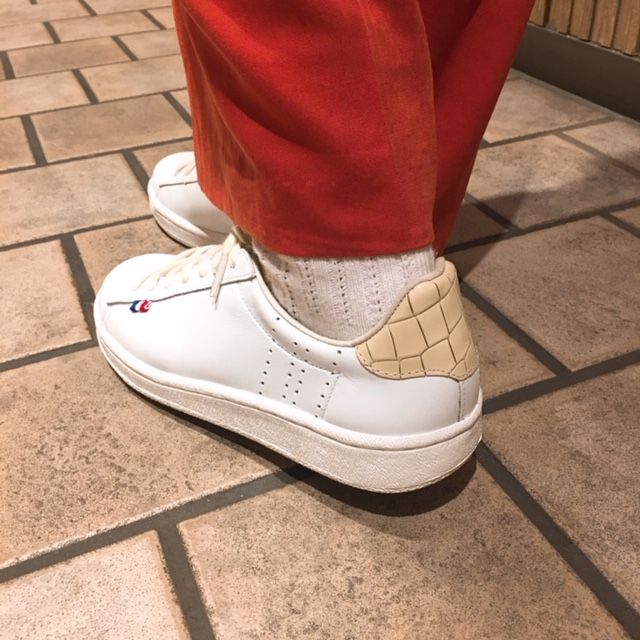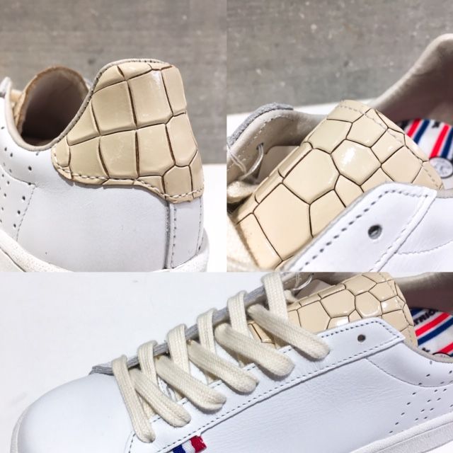 クロコ柄の型押しを施したエナメルレザーがポイント。