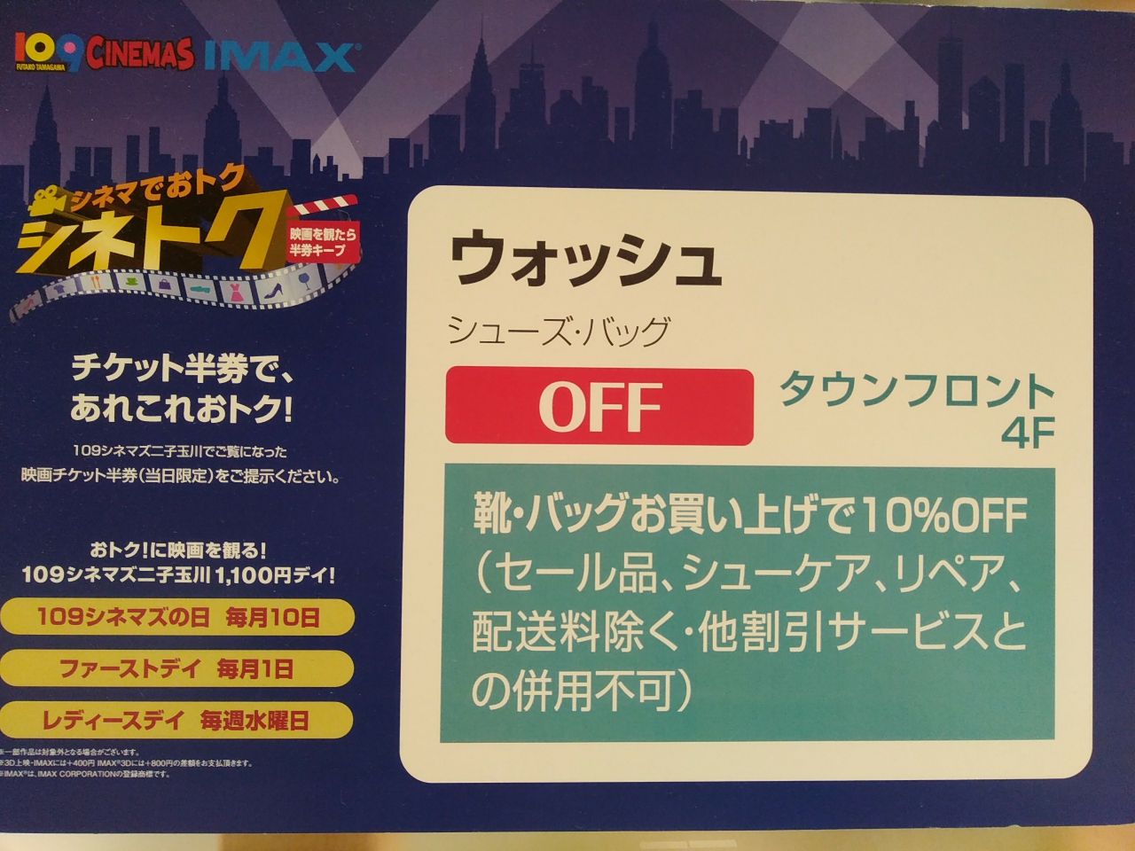 WASH二子玉川ライズ店では映画の半券をお持ち頂くと10%オフになる