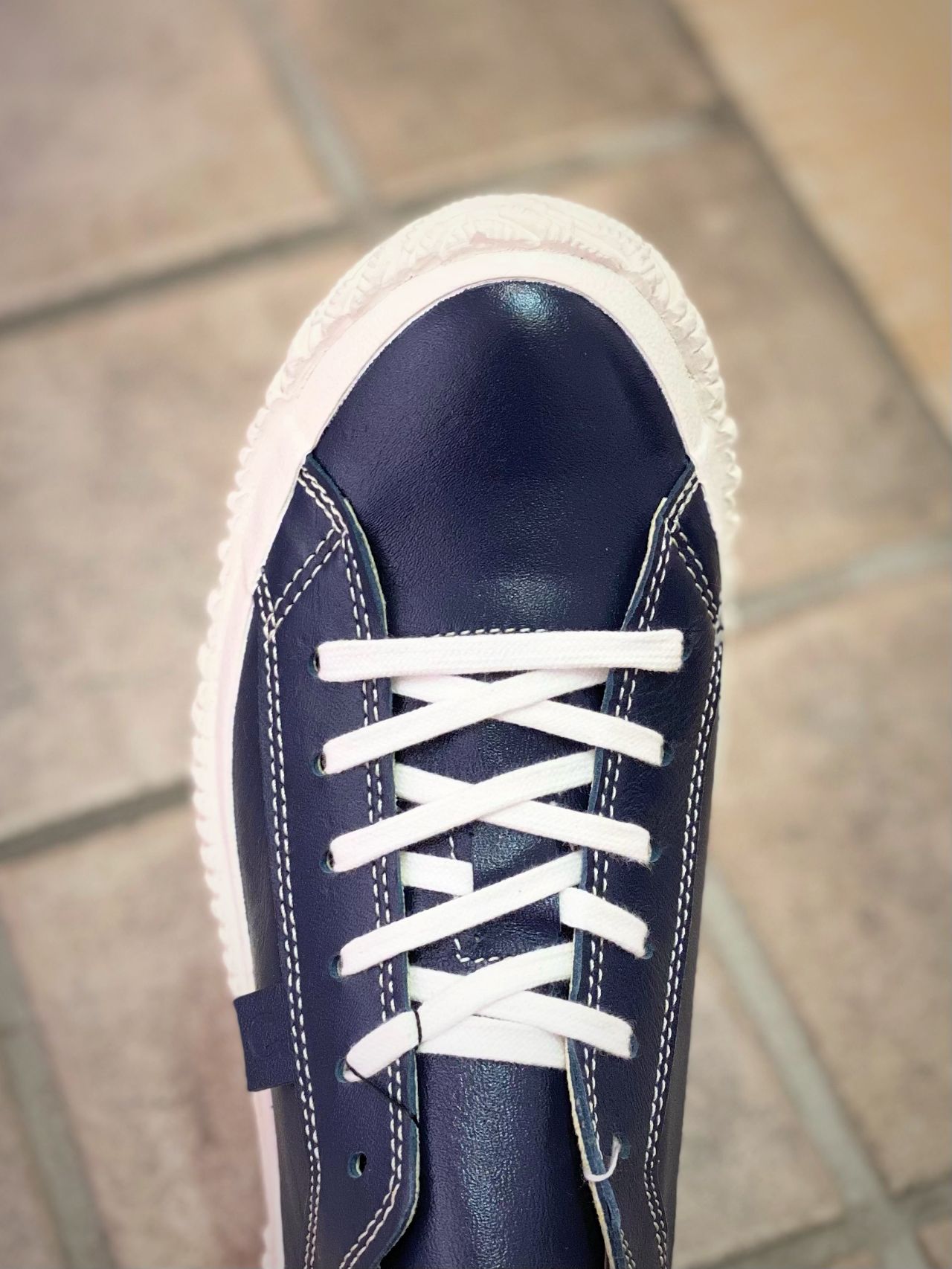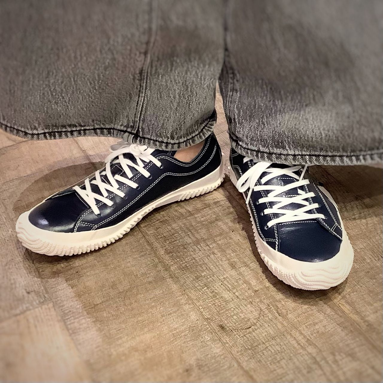 ホワイトソールが重たくならず、爽やかな印象。