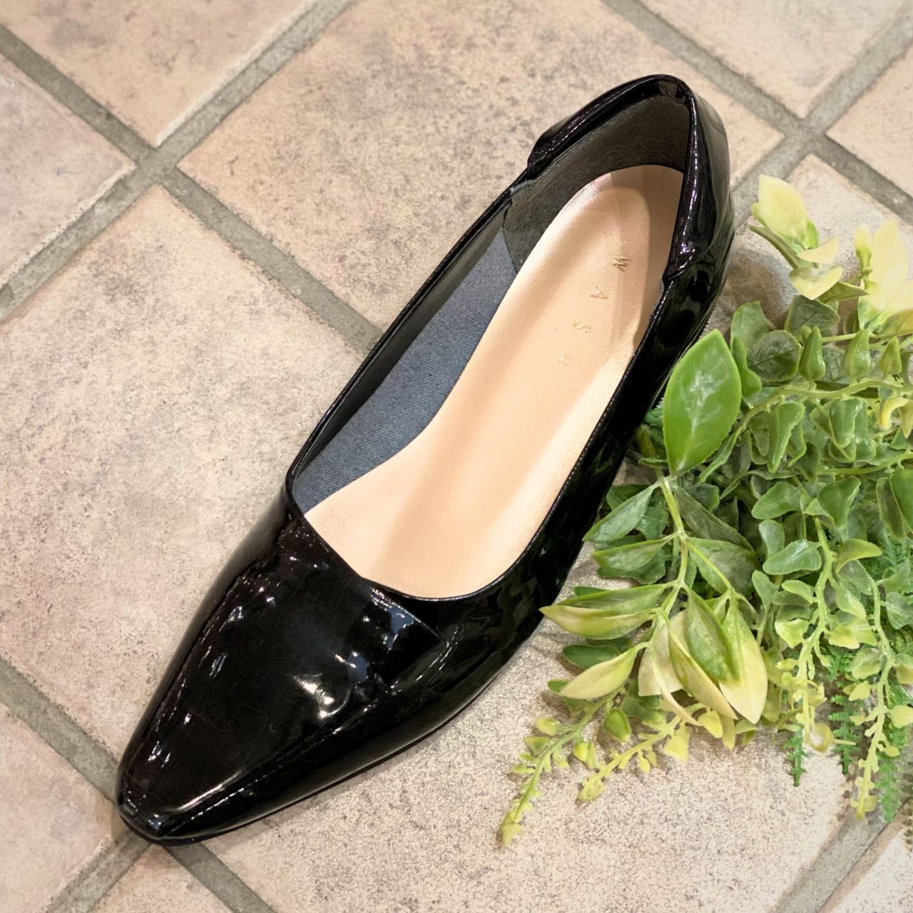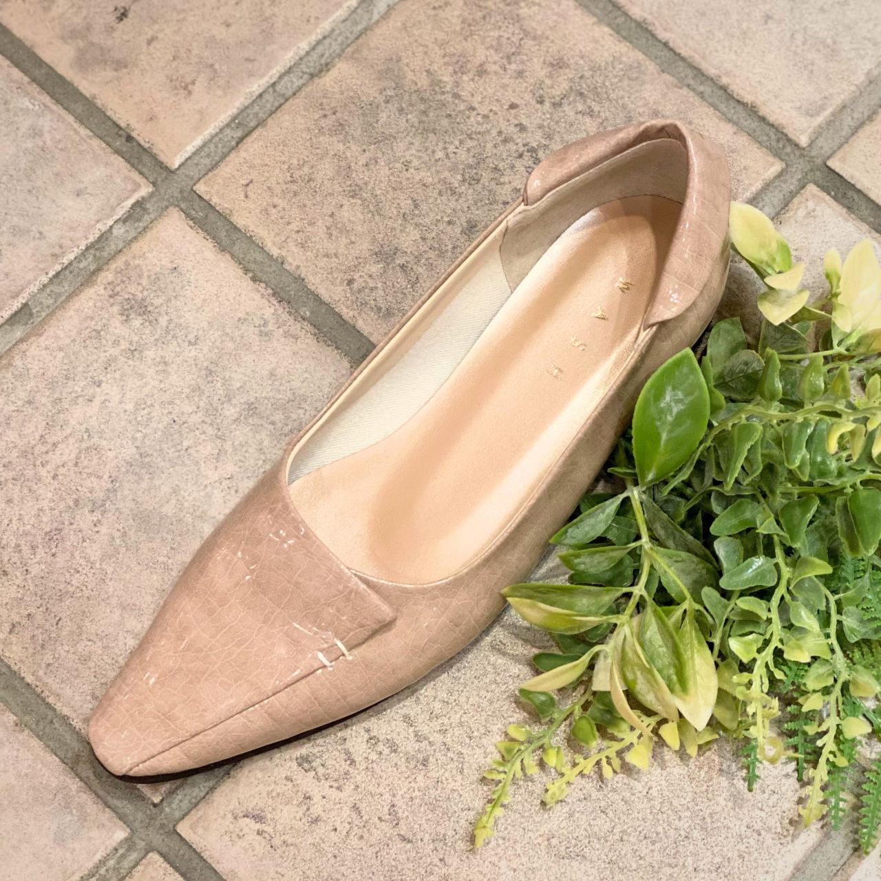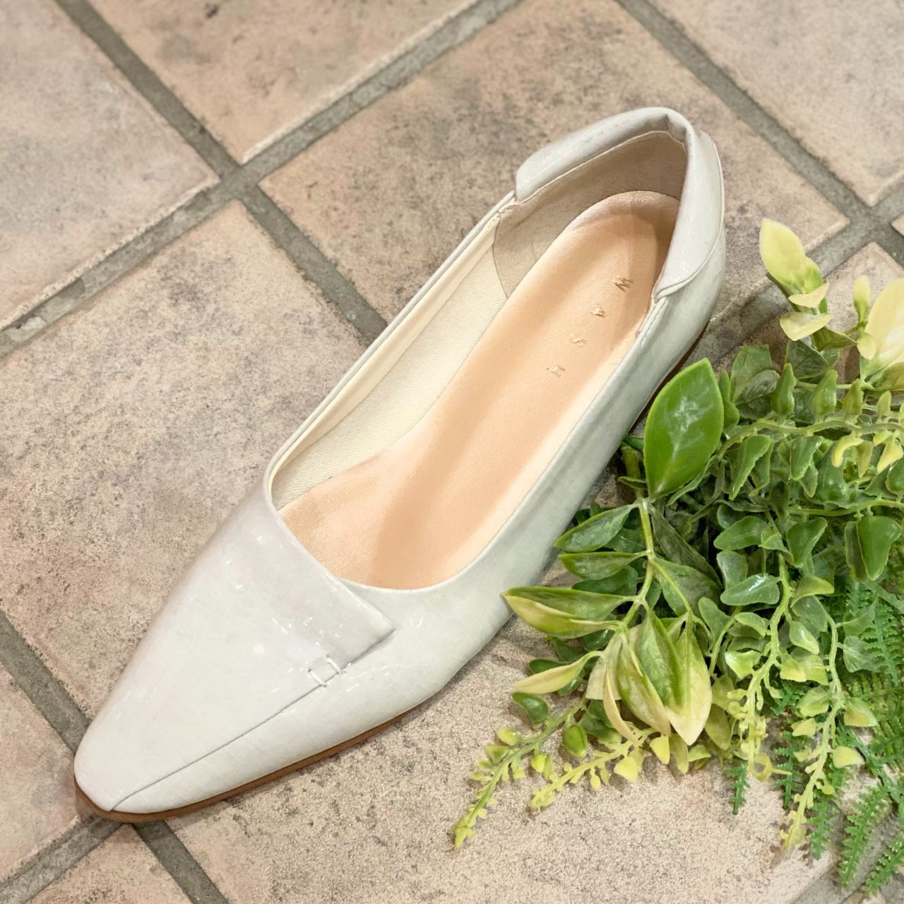 ポインテッドトウなのでフラットシューズでもスッキリして見えます。