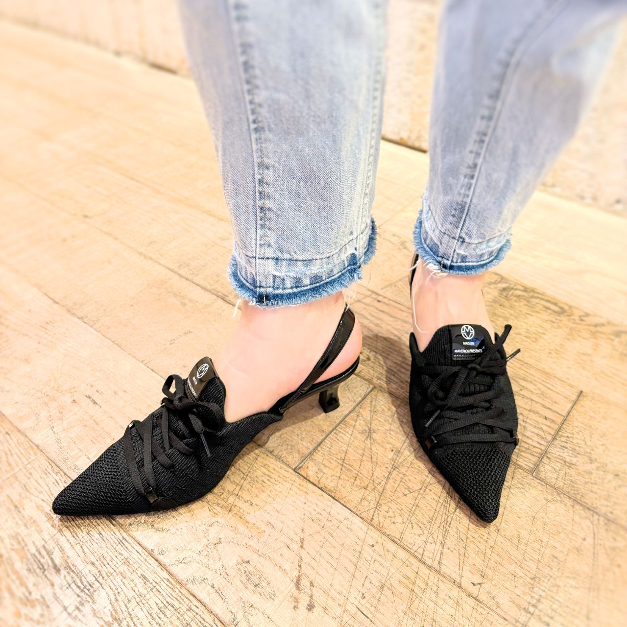 "ニットレースアップミュールスニーカー"って説明していて、