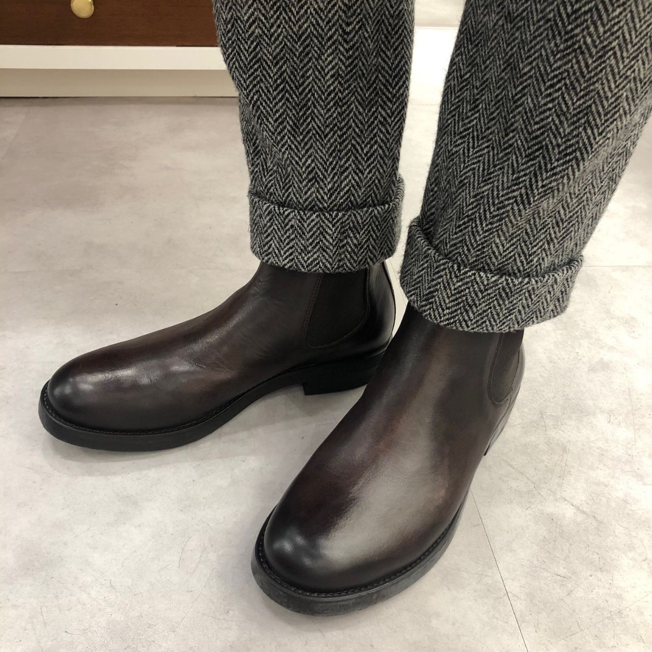 サイドゴアブーツは足首周りがシュッと締まりますので、こちらもシルエットは最高です。
