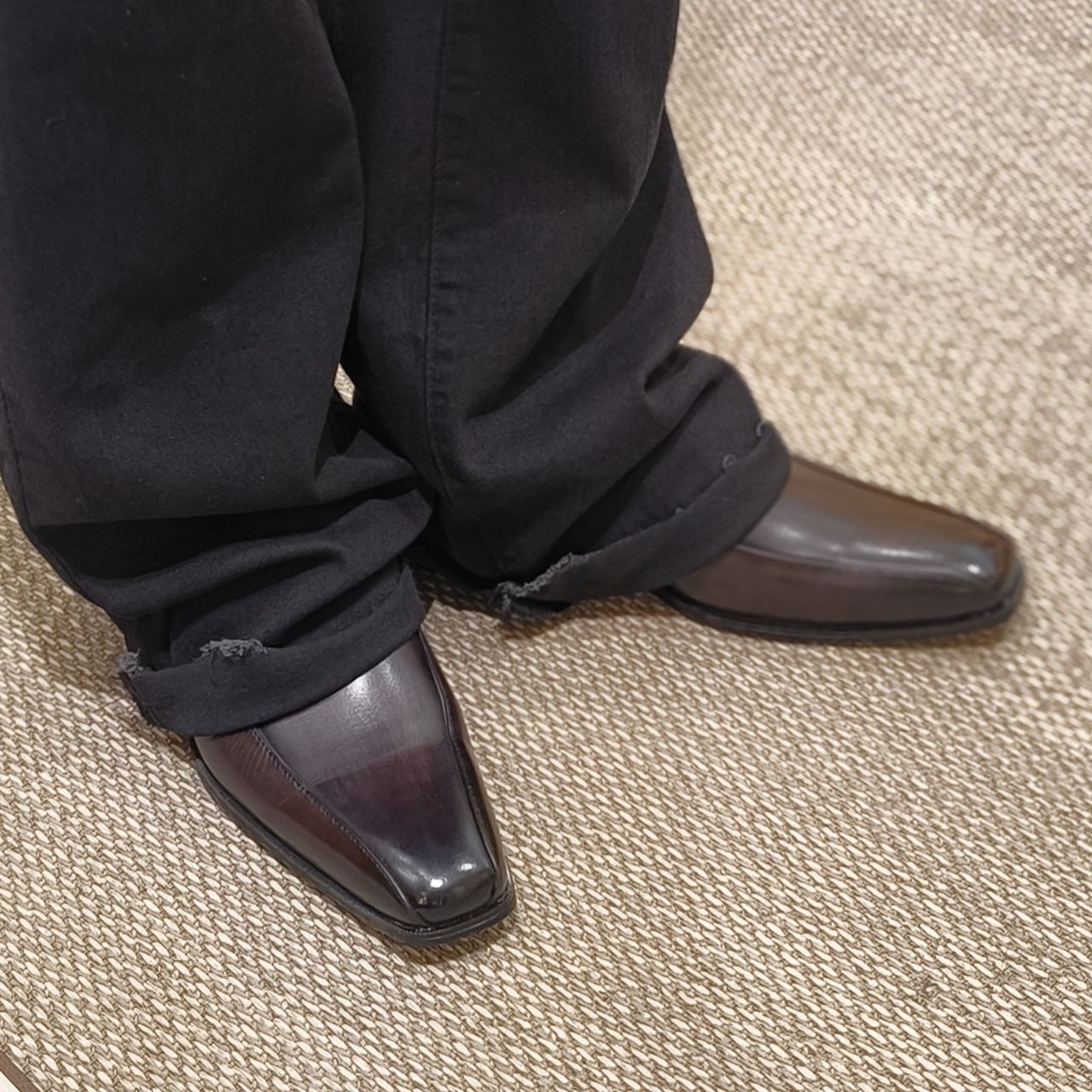 日本画や陶芸で見られる刷毛塗りを用いて革に表情をつける新技法、「かぶき染め」が施されており、筆あとが残るような仕上げがたまらない一足となっております。