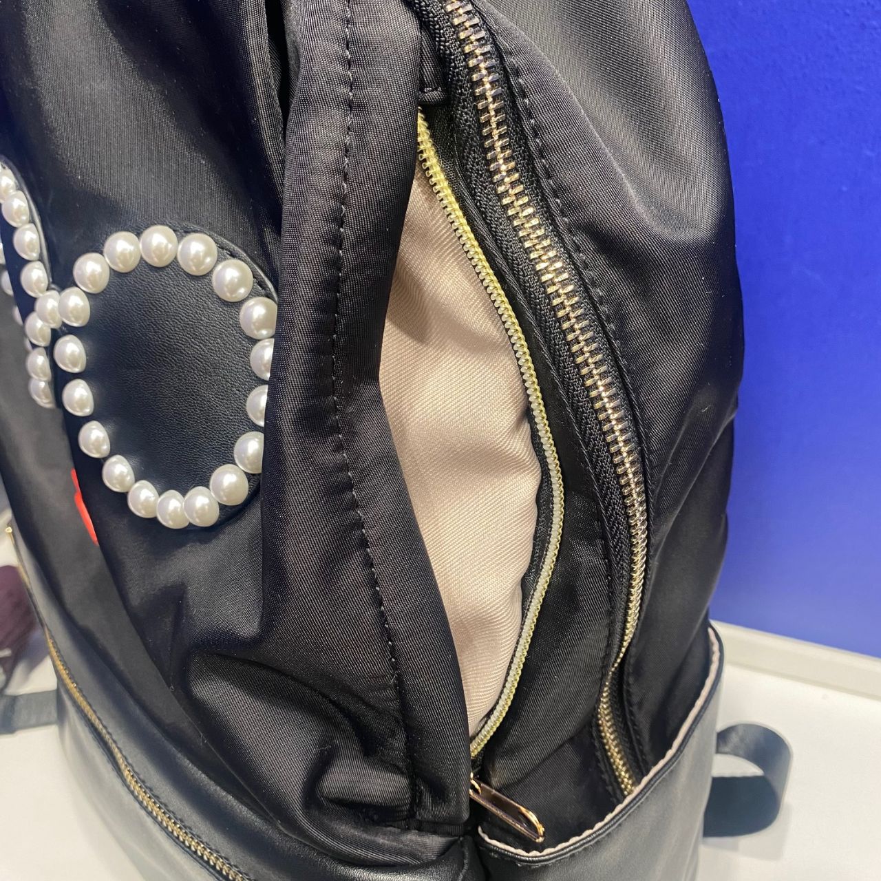 右側のジッパーは背中からもバッグの中身が