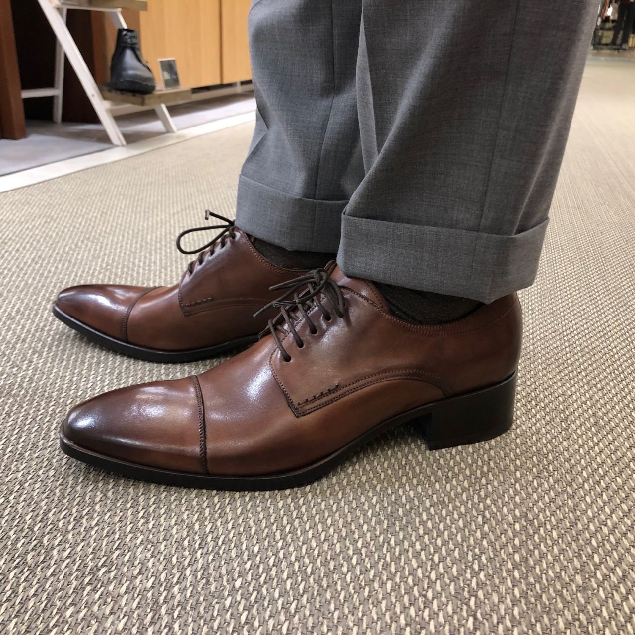 ヒールアップと言ってもただ高さを増しただけでなく、ヒールアップ用の木型を採用しておりますので、違和感のない美しいフォルムを実現しております。